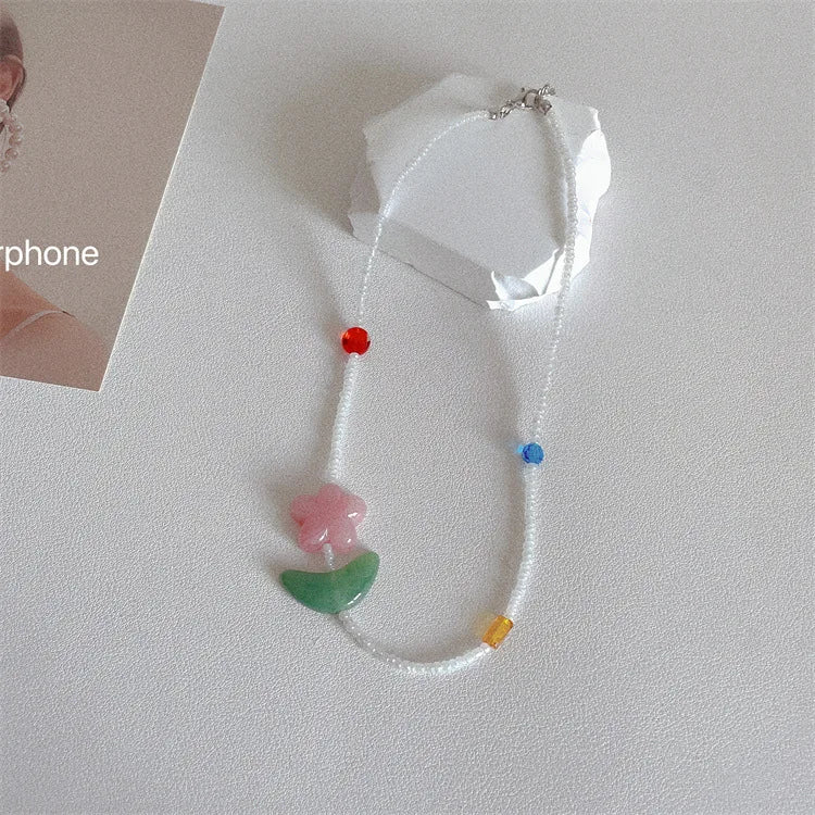 Lunivop Vintage Hand-woven Flower Choker Necklace For Woman Baroque Exaggerated Beaded Clavicle Chain Aesthetic Jewelry