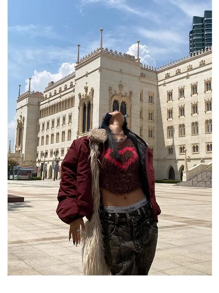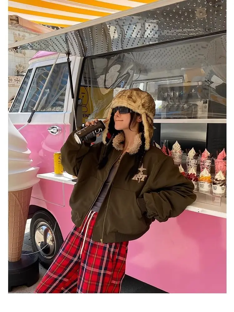 Lunivop Vintage Lamb Wool Jacket Women Y2k Streetwear Winter Coat Warm Padding Jackets Korean Fashion Short Outwear Aesthetic
