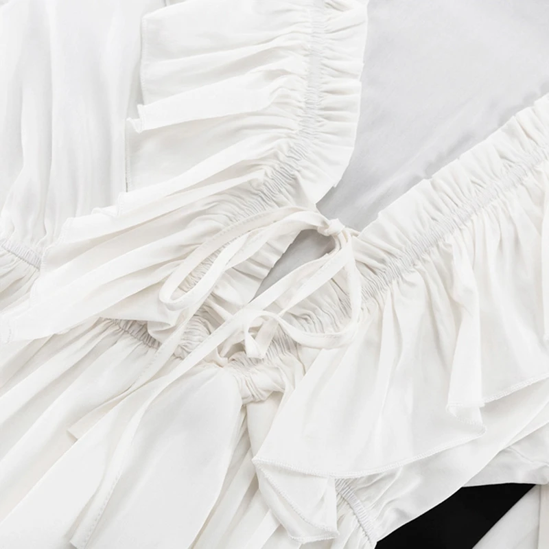 Lunivop Vintage Long Sleeves Tunic Waist Dresses for Women Fairy V Neck Ruffles White Mini Dress Club Party A-line Dress Y2K Streetwear