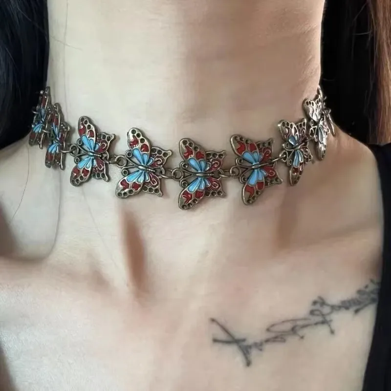 Lunivop Vintage Metal Mechanical Gear Butterfly Oil Drop Necklace Bracelet Women Cyberpunk Y2k Spice Girls Party Jewelry Accessories