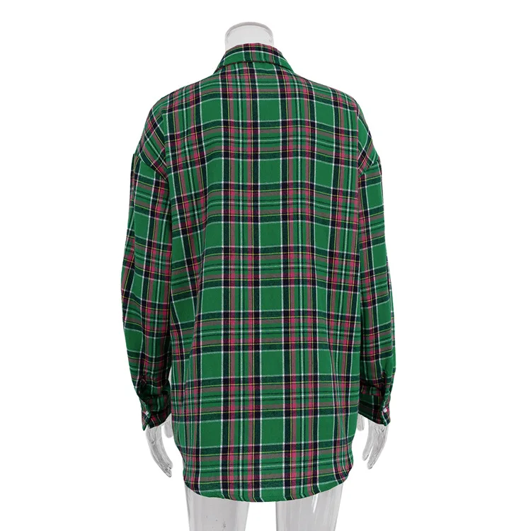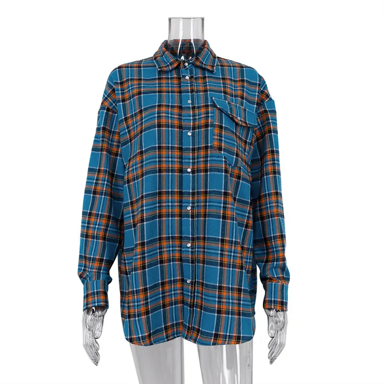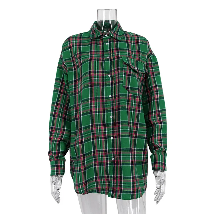 Lunivop Vintage Plaid Shirt Loose Long Sleeve Woman‘s Blouses 2024 Spring Autumn Casual Fashion Shirt with Pockets Woman Tops