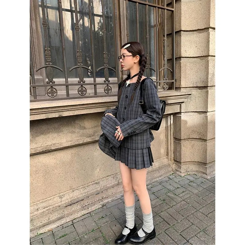 Lunivop Vintage Plaid Skirt Women Preppy Style Sweet Pleated Mini Skirt Korean Fashion Retro Japanese Harajuku Short Skirts
