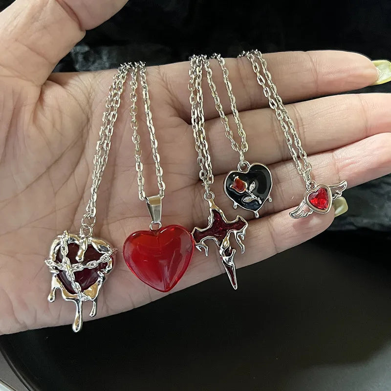 Lunivop Vintage Punk Angel Wings Pendant Heart Necklaces For Women Fashion Personality Zircon Crystal Chain Choker Goth Jewelry
