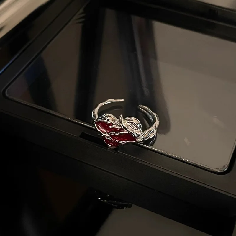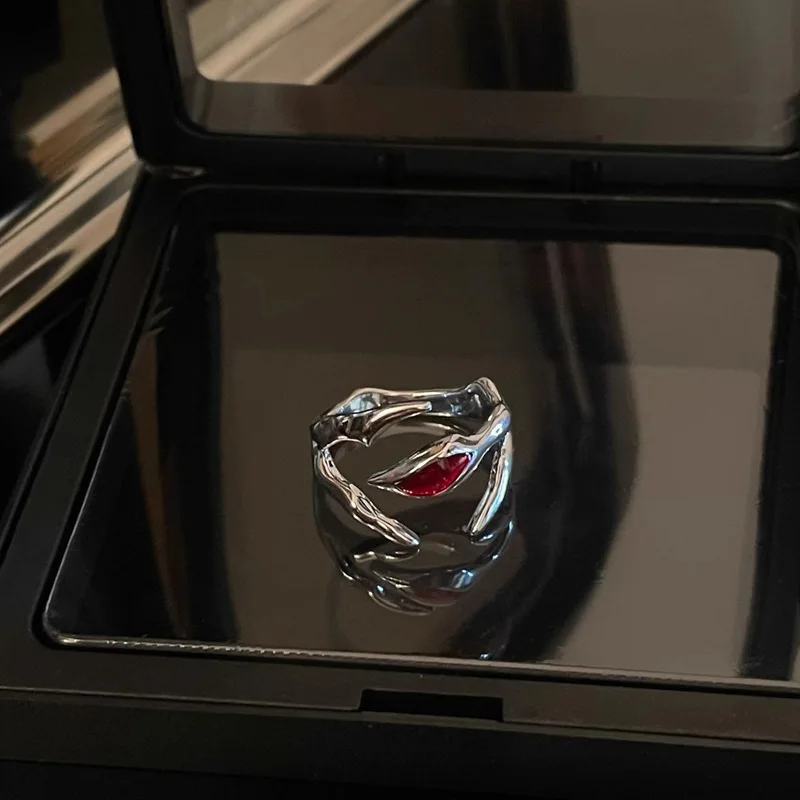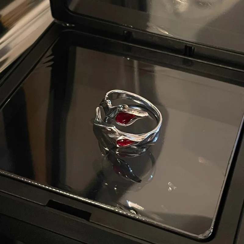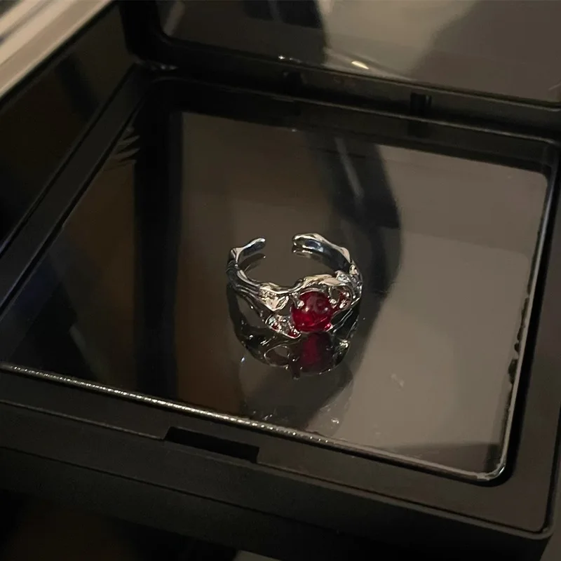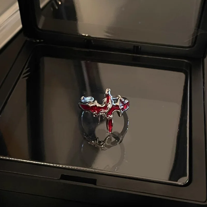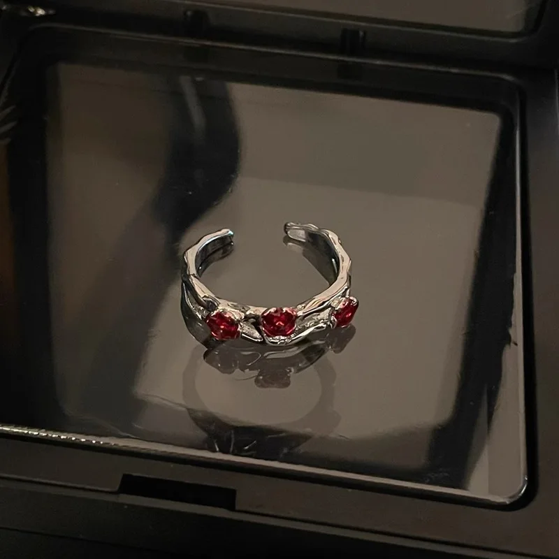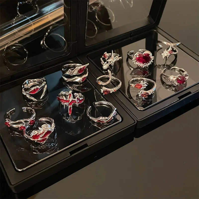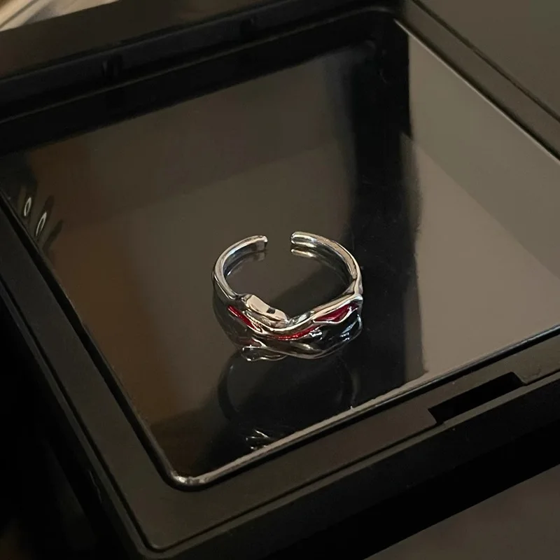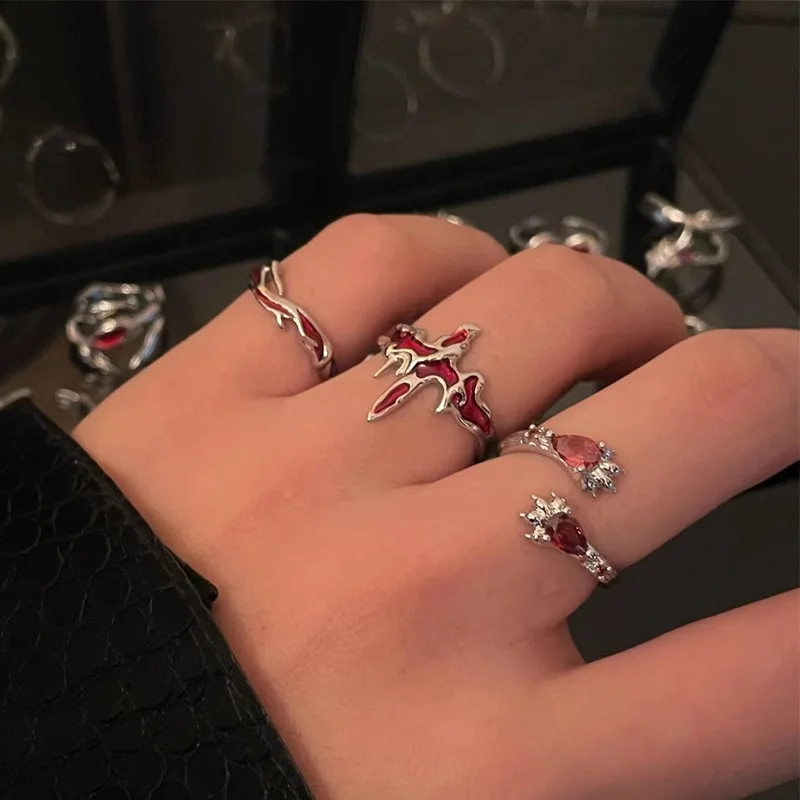 Lunivop Vintage Red Enamel Cross Open Rings For Women Men Punk Hip Hop Irregular Lava Texture Rings Y2K Aesthetic Jewelry