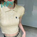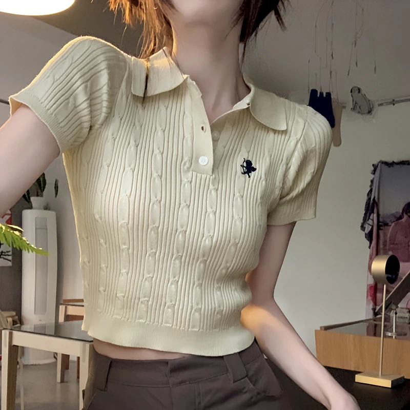 Lunivop Vintage Shirts for Women Angel Embroidery Tshirts Crop Tops Casual Fashion Knitted Summer T Shirts Korean Tees 2024 Ropa Mujer