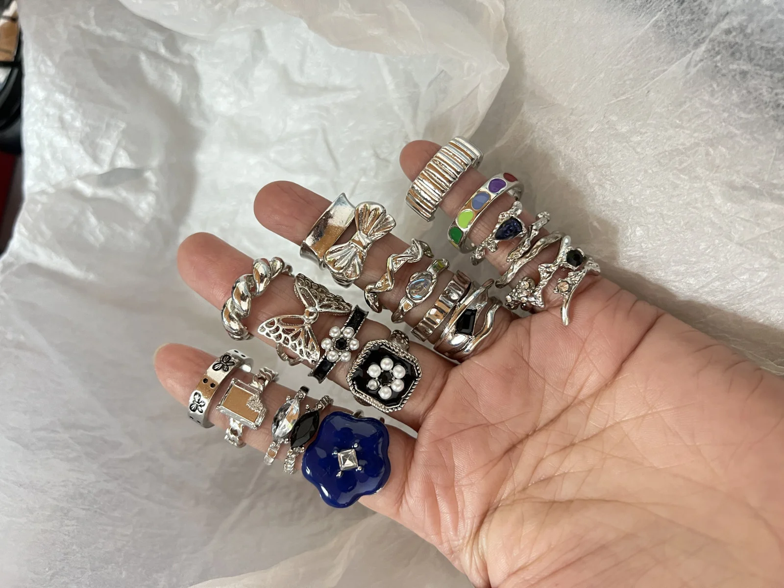 Lunivop Vintage Silver Plated Cross Ring set for Women Gothic Punk Steampunk Butterfly Ring Sets Party Fashion Jewelr