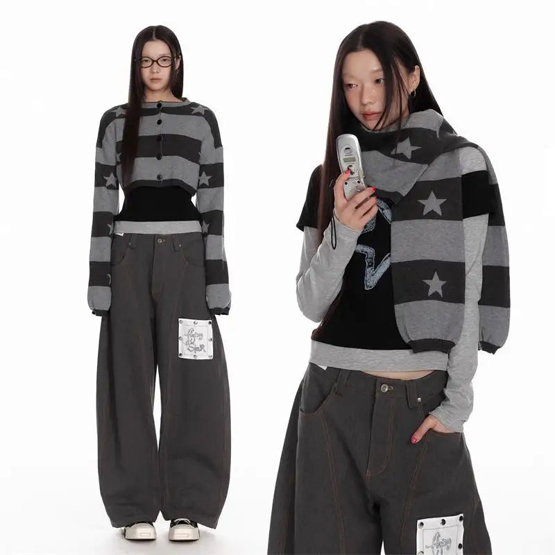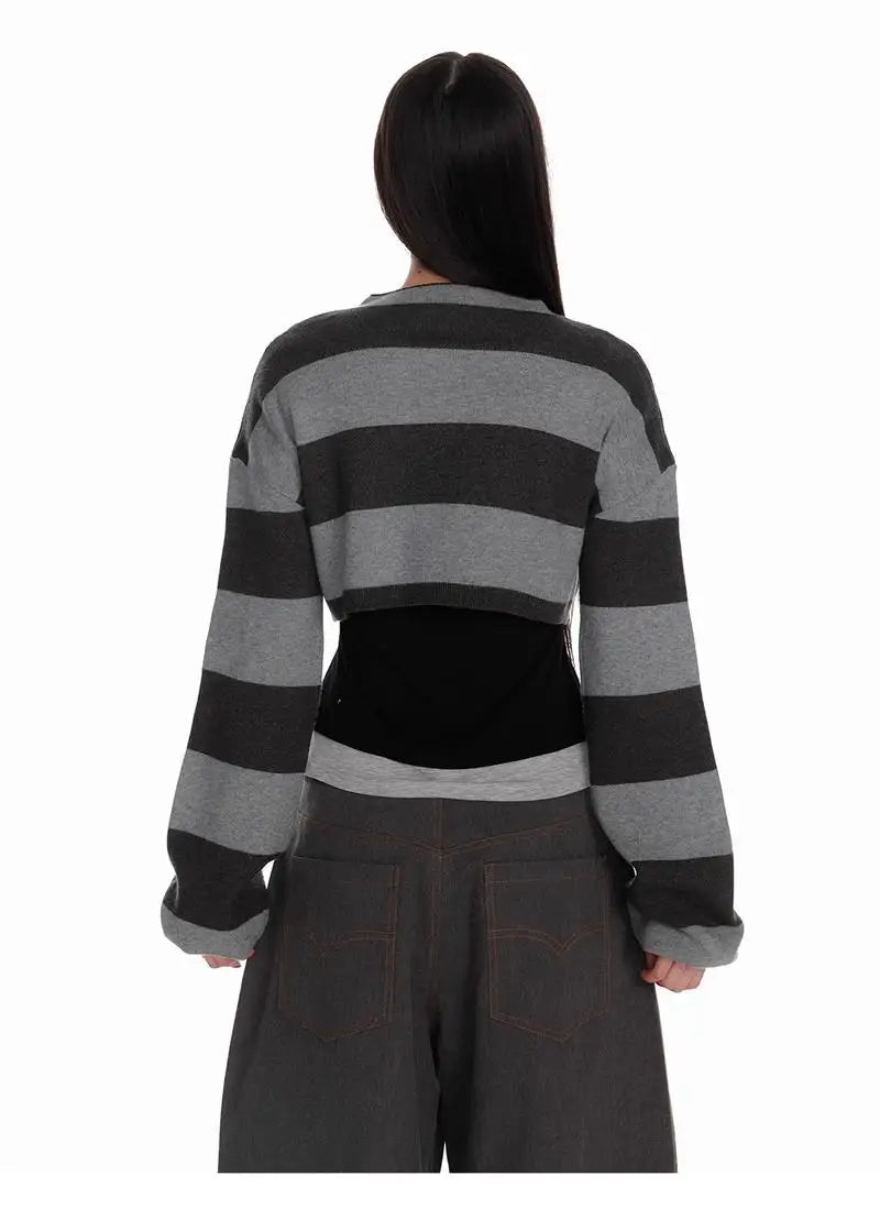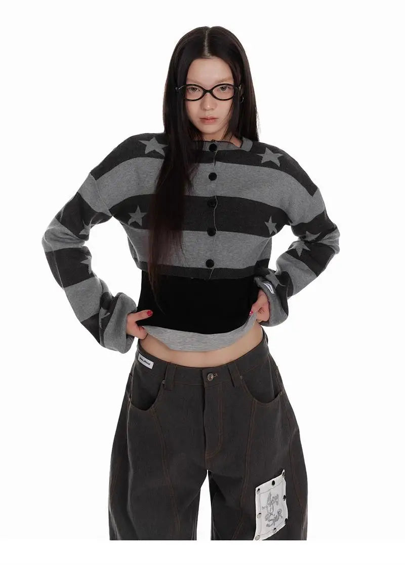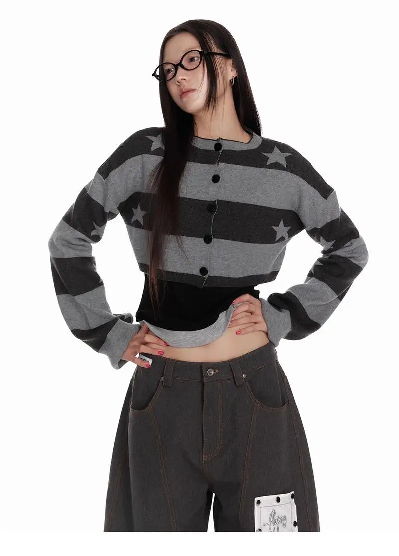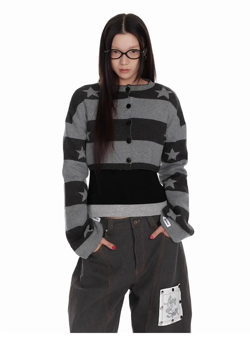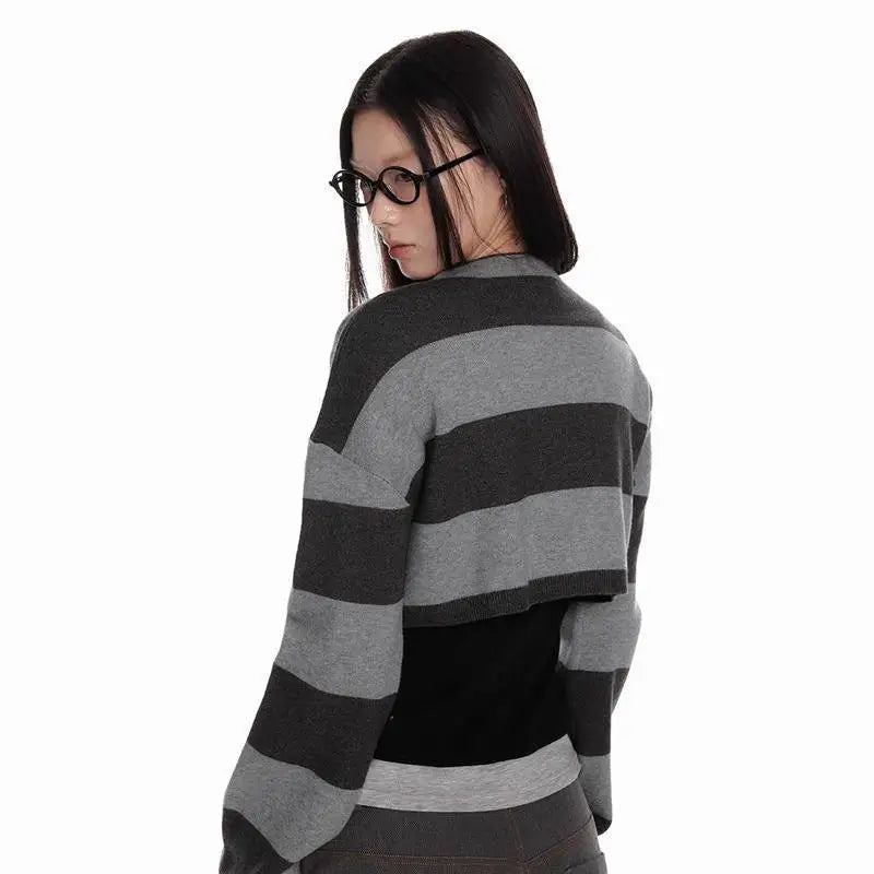 Lunivop Vintage Striped Knitted Cardigan Women Harajuku Y2k Crop Tops American Retro Gothic Streetwear Cardigan Aesthetics
