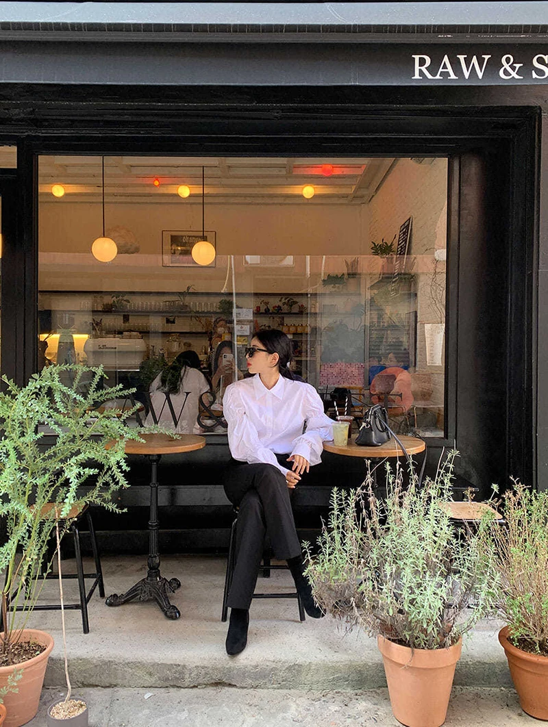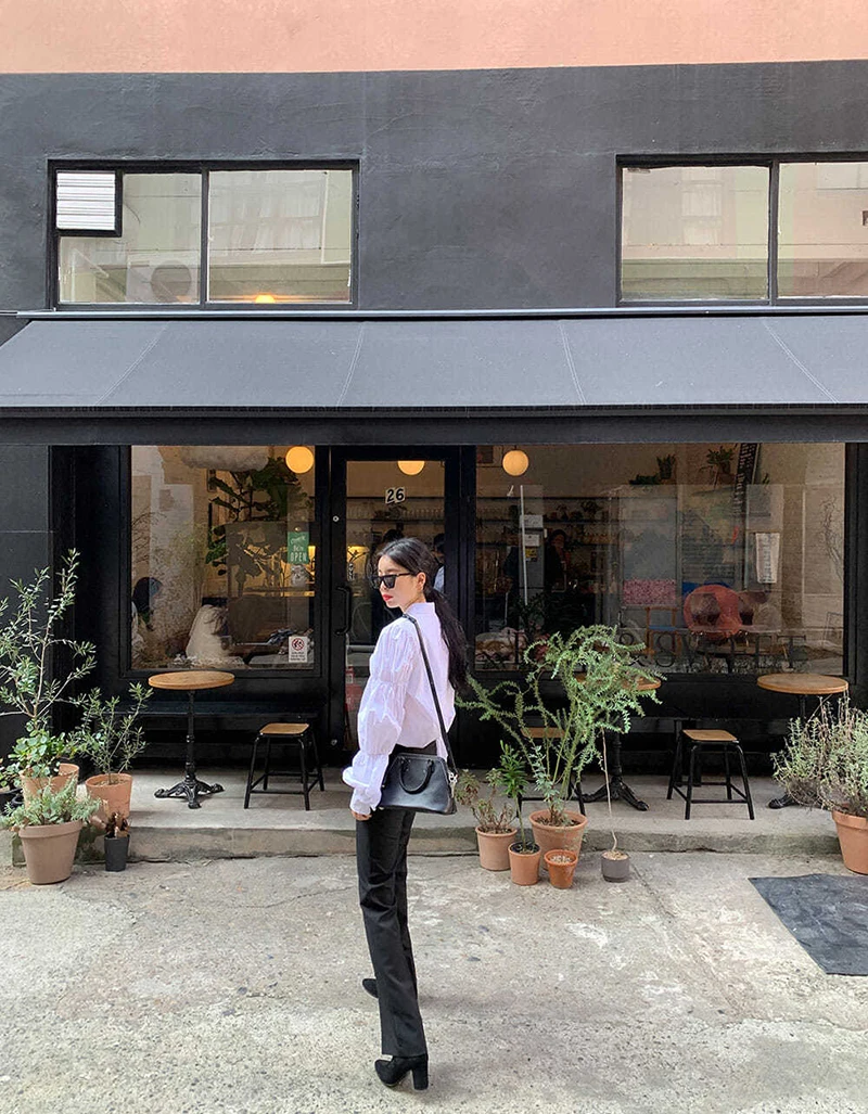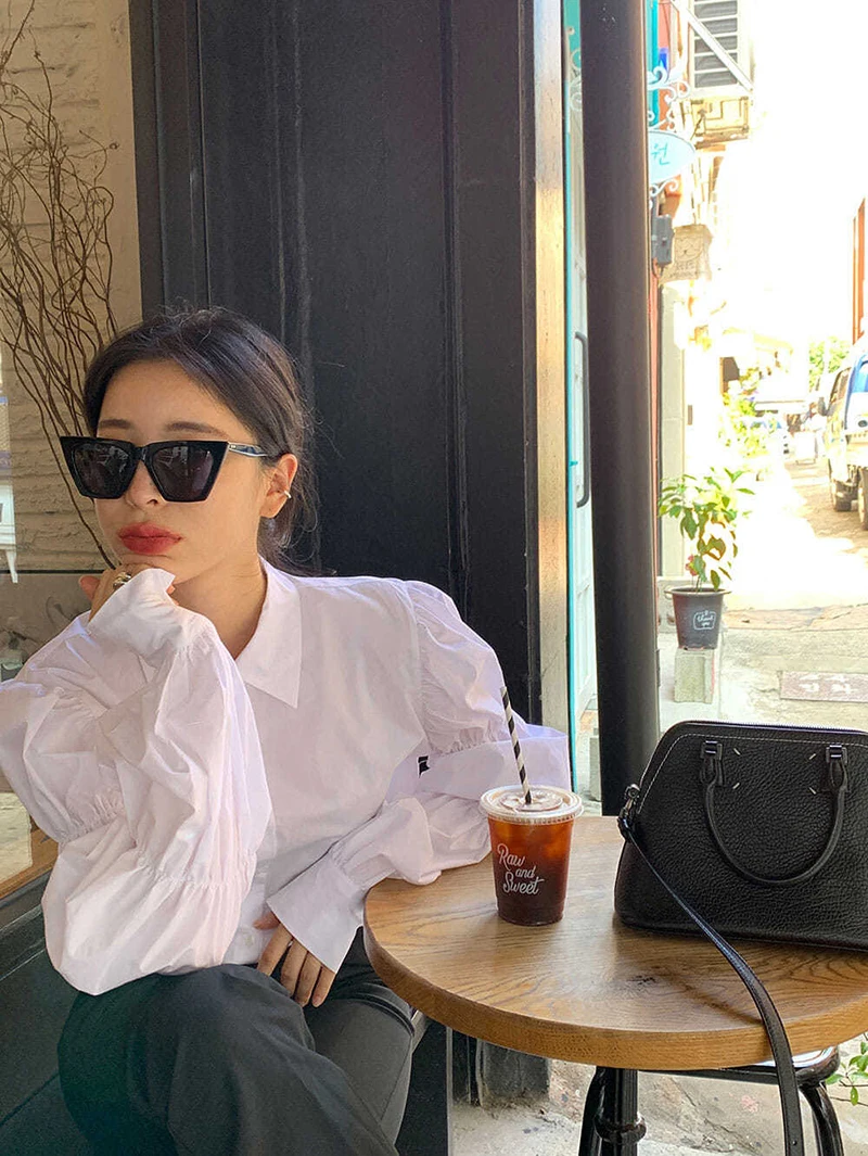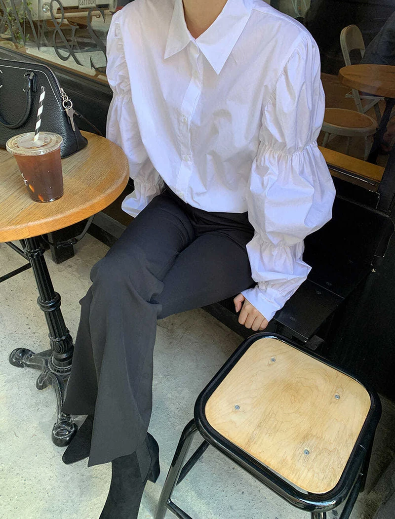 Lunivop Vintage White Shirts Women Puff Sleeve Folds Blouses Korean Streetwear Office Lady Elegant Solid Simple Loose Casual Tops