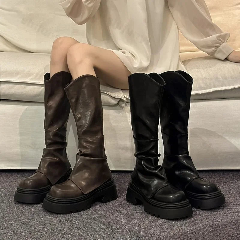 Lunivop Vintage Women Knee High Boots New Fashion Slip on Knight Long Booties Ladies Casaul Platform Heels Botas De Mujer