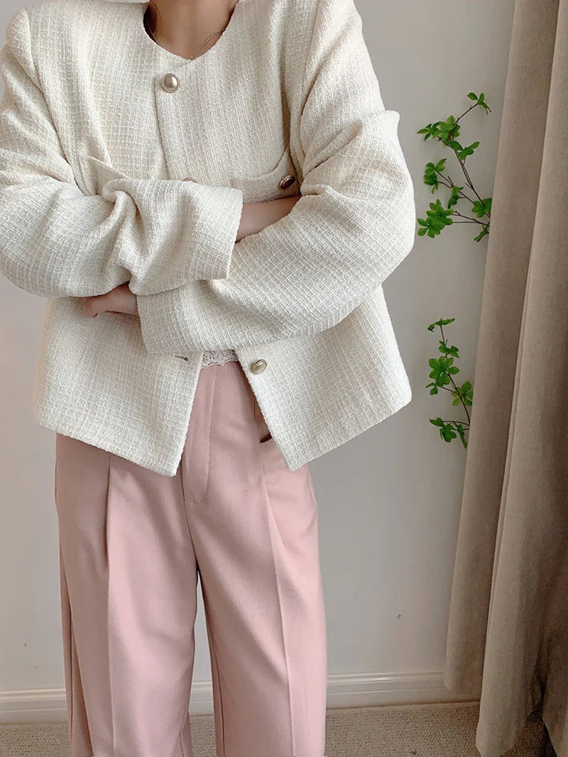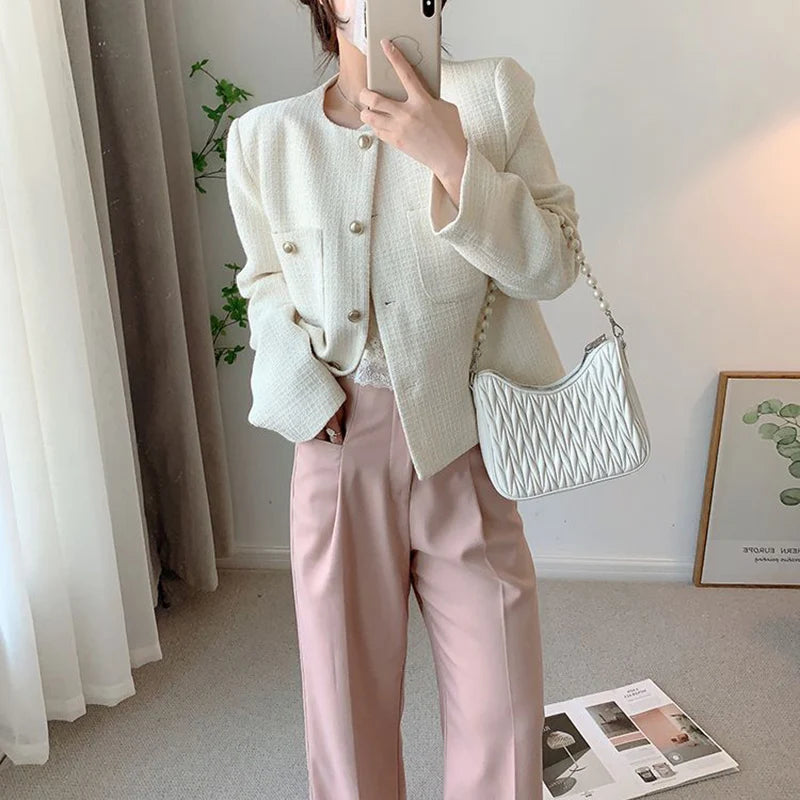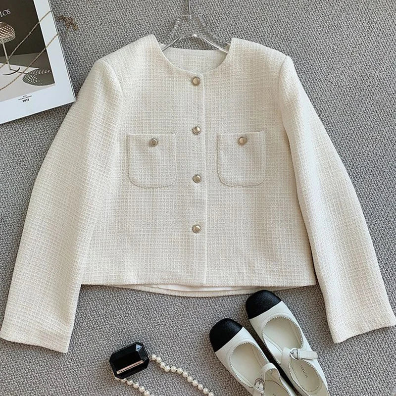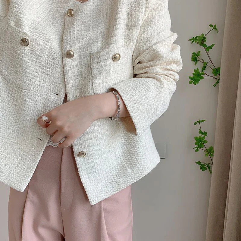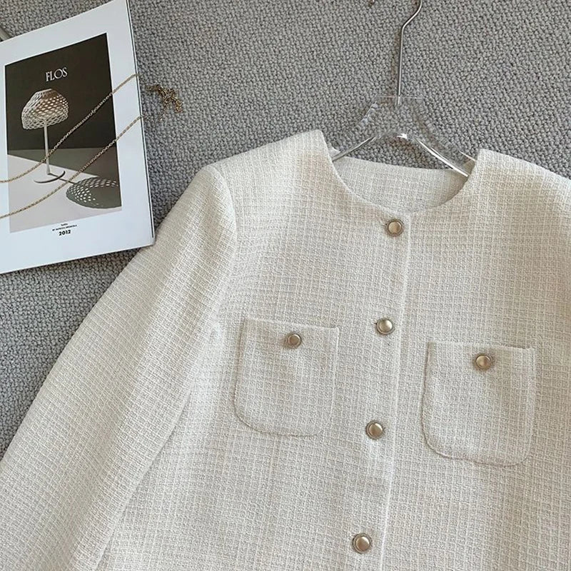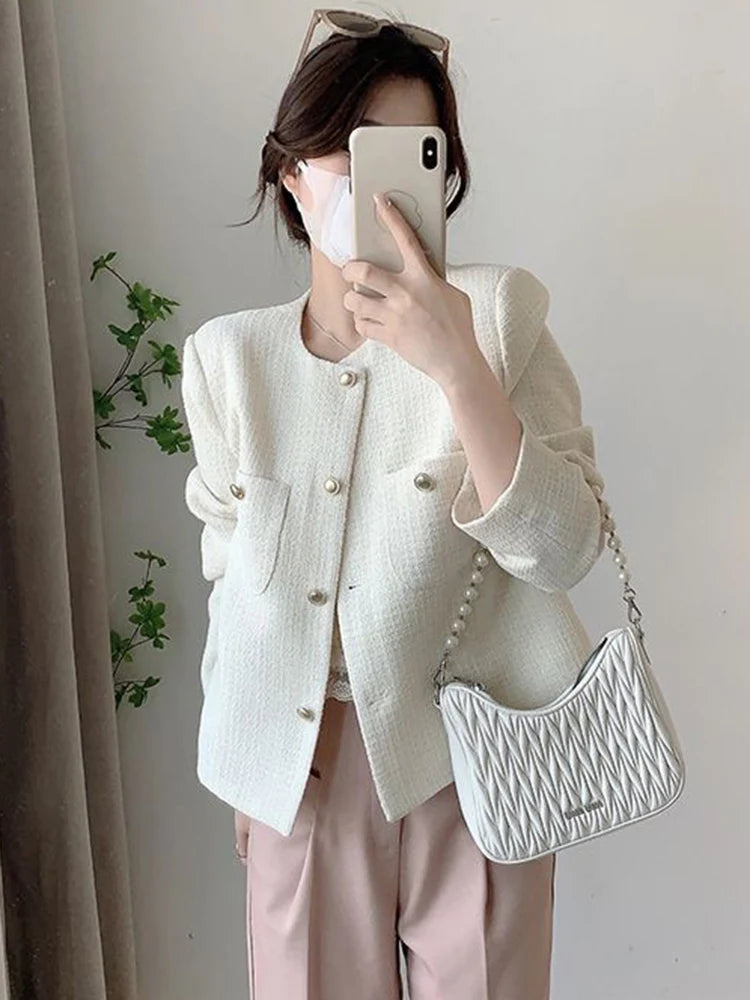 Lunivop White Elegant Tweed Jacket Women Slim Long Sleeve O Neck Chic Sweet Short Coat Fall Winter French Female Fashion New Tops
