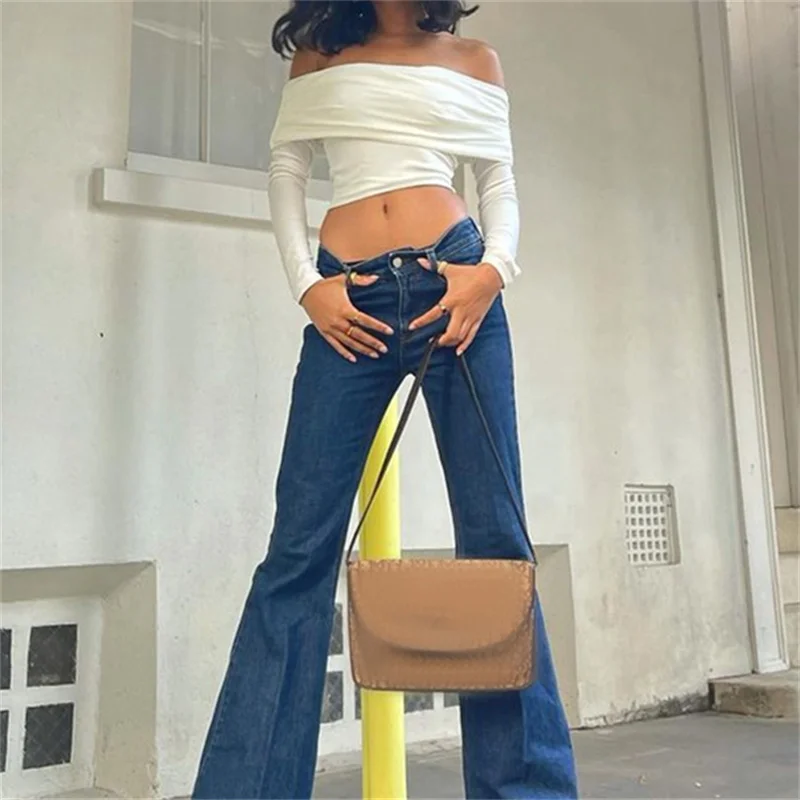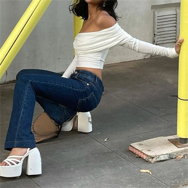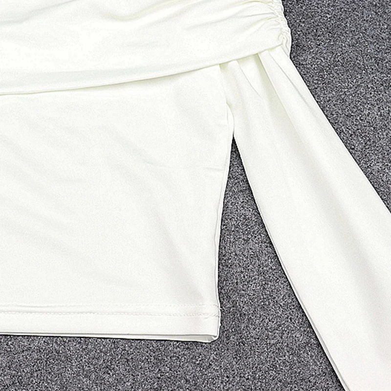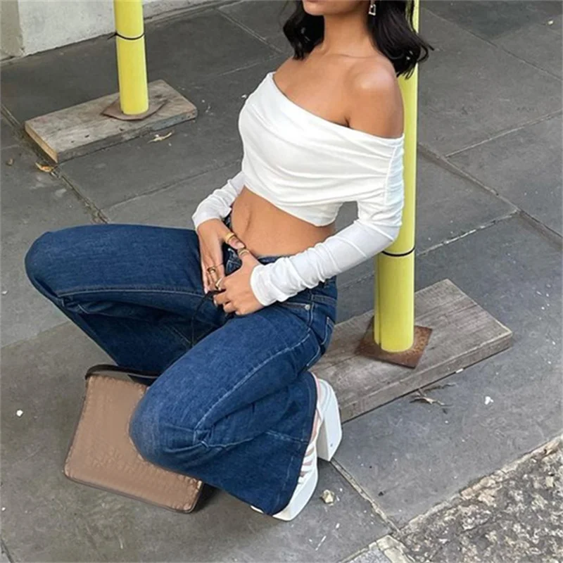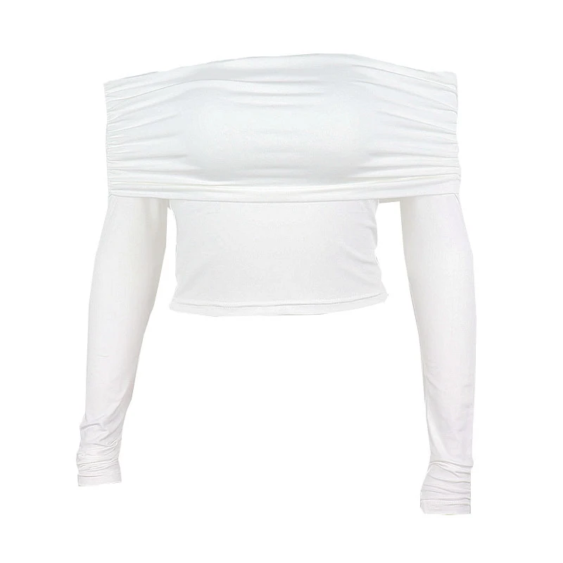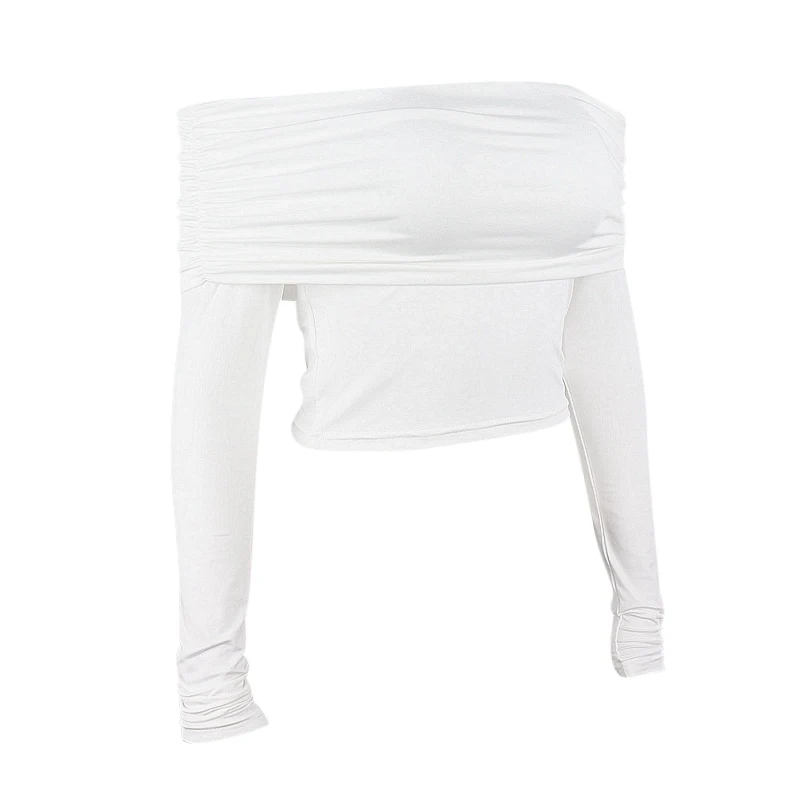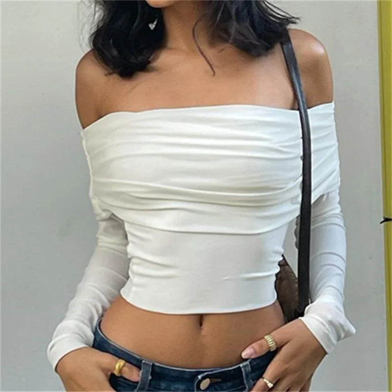 Lunivop White Off Shoulder Long Sleeve Crop Top Women Slash Neck Slim Fit T-Shirt Y2k Fairycore Baby Tees Autumn Female Blouses Clothes
