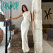 Lunivop White Ribbon Draped Maxi Dress Women Elegant Sleeveless High Waist Bodycon Summer Summer Tunic Dress Robes