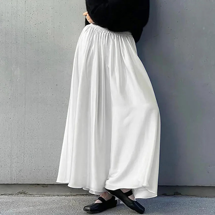 Lunivop White Satin Maxi Skirt for Women Elegant Fashion High Waist Slim Skirts Autumn Winter Casual Loose A-line Skirt with Lining 2024