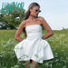 Lunivop White Strapless Mini Dress for Women Sexy Off Shoulder Sleeveless Slim Holidays Dress Summer Fashion A-Line Ruched Dress 2024