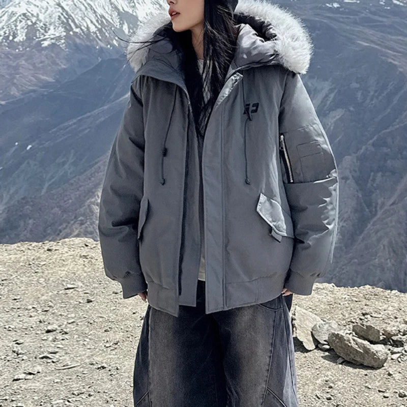 Lunivop Winter Outdoor Padded Cotton-padded Clothes Female American Retro Big Fur Collar Down Cotton-padded Jacket