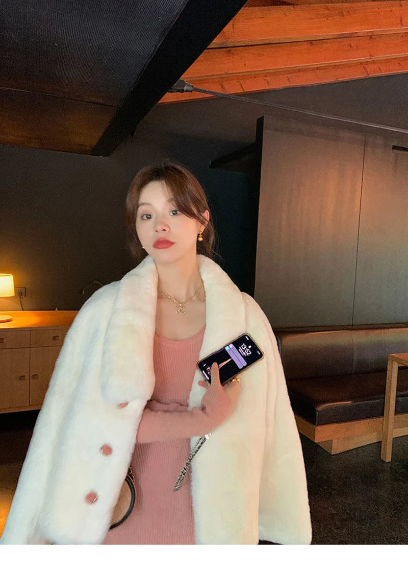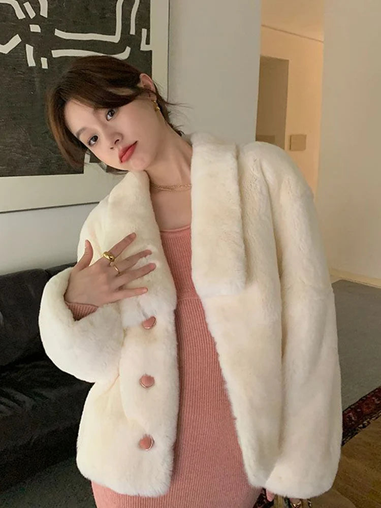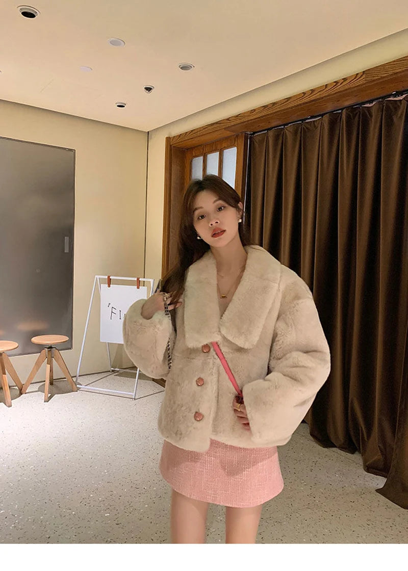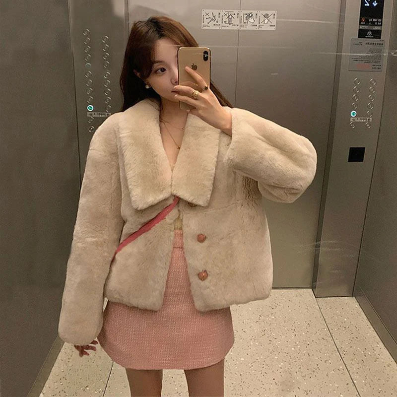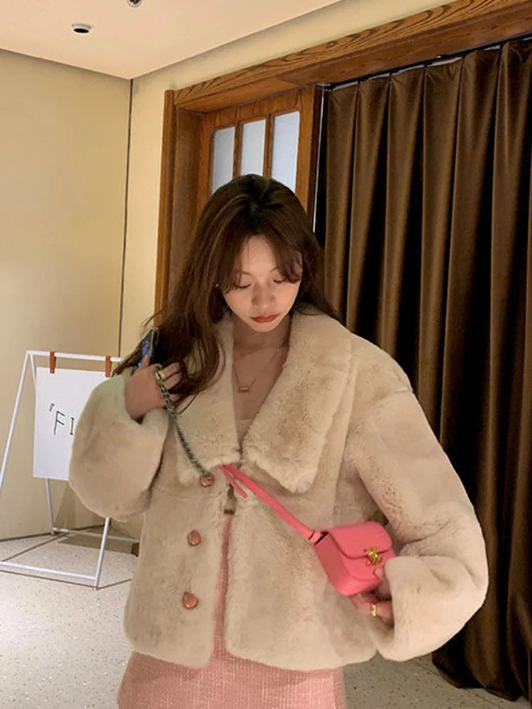 Lunivop Winter Sweet Faux Lamb Coat Women Elegant Long Sleeve Slim Retro Jacket Warm Soft Female Korean Single Breasted Vintage Top