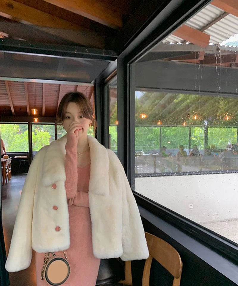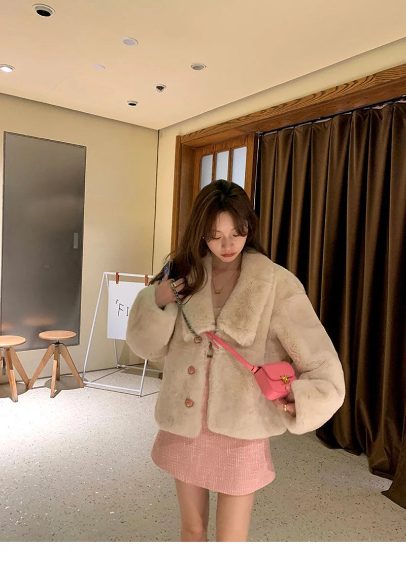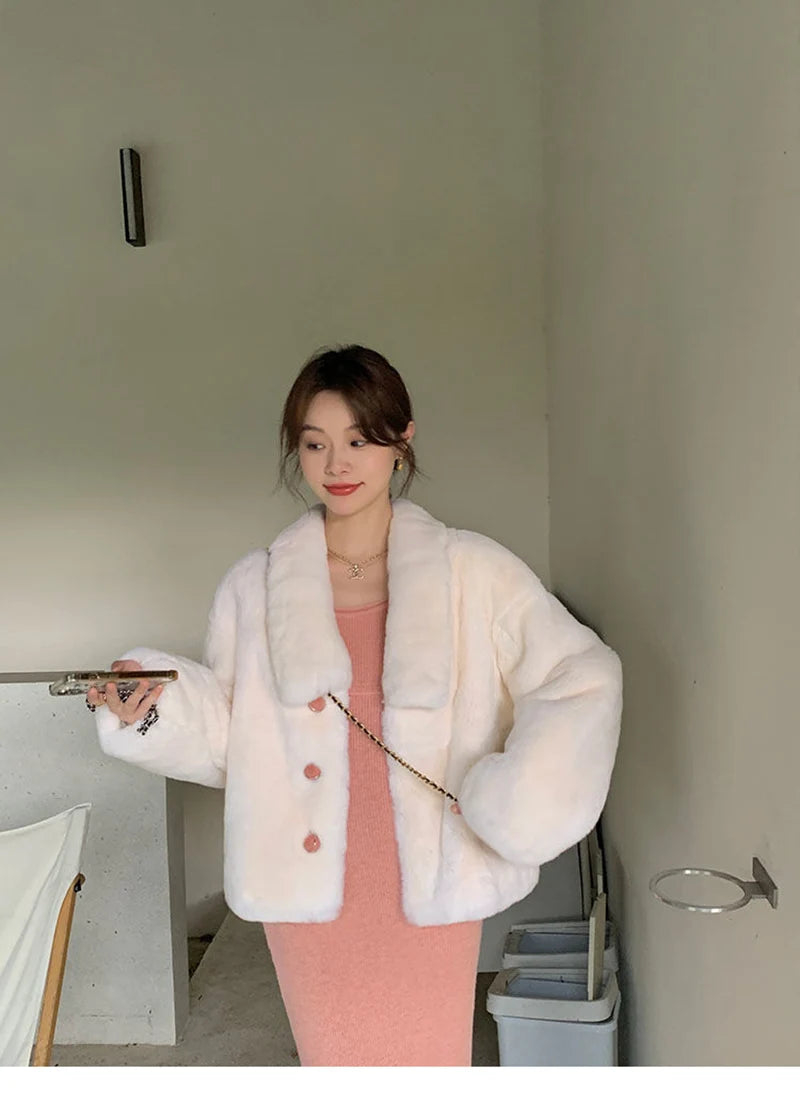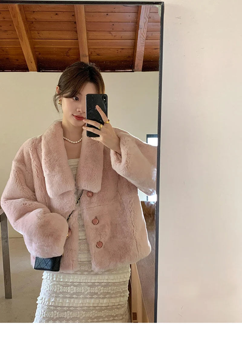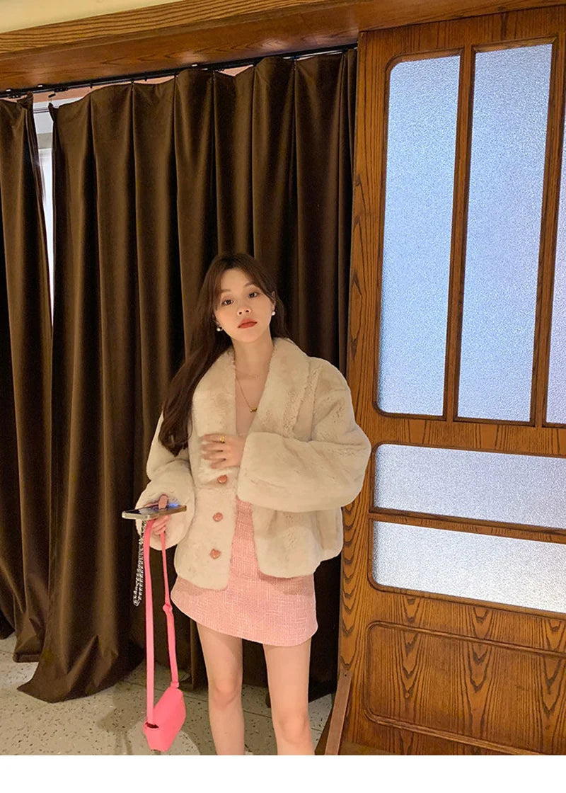 Lunivop Winter Sweet Faux Lamb Coat Women Elegant Long Sleeve Slim Retro Jacket Warm Soft Female Korean Single Breasted Vintage Top