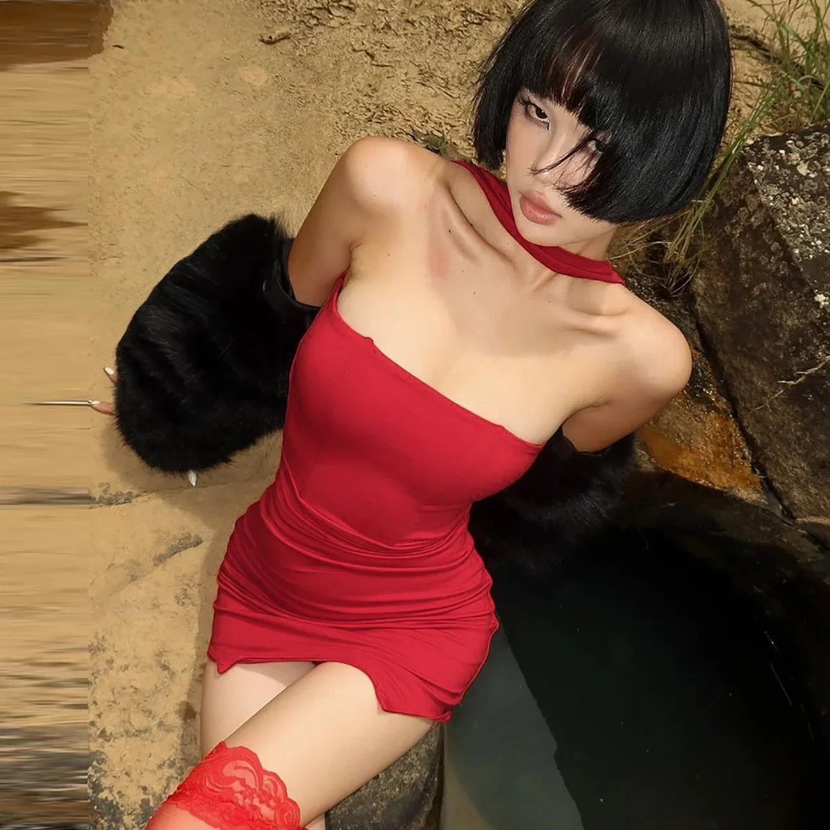Lunivop Woman Clothes Halter Slash Neck Mini Wrap Dress Fashion Sexy Sleeveless Hollow Out Bodycon Party Night Club Dresses Streetwear