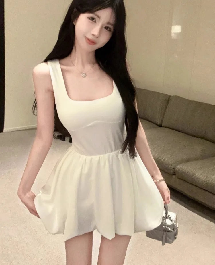 Lunivop Woman Dress Fashion Sexy Square Collar Sleeveless Slim Summer New Bud Mini Dresses Party Female Clubwear Elegant
