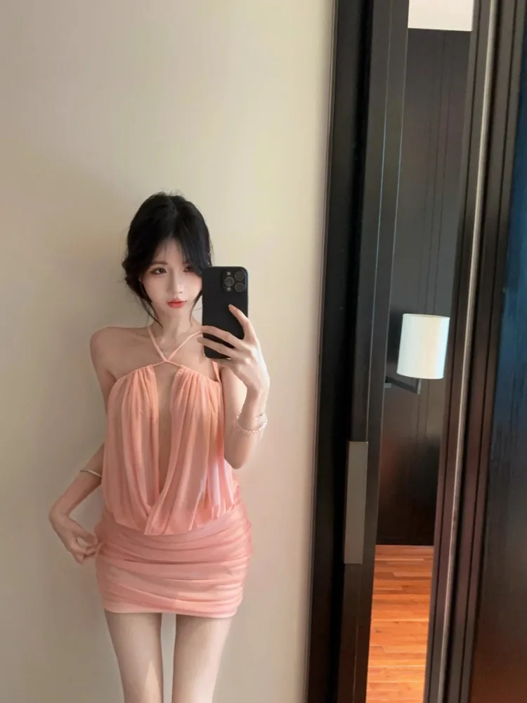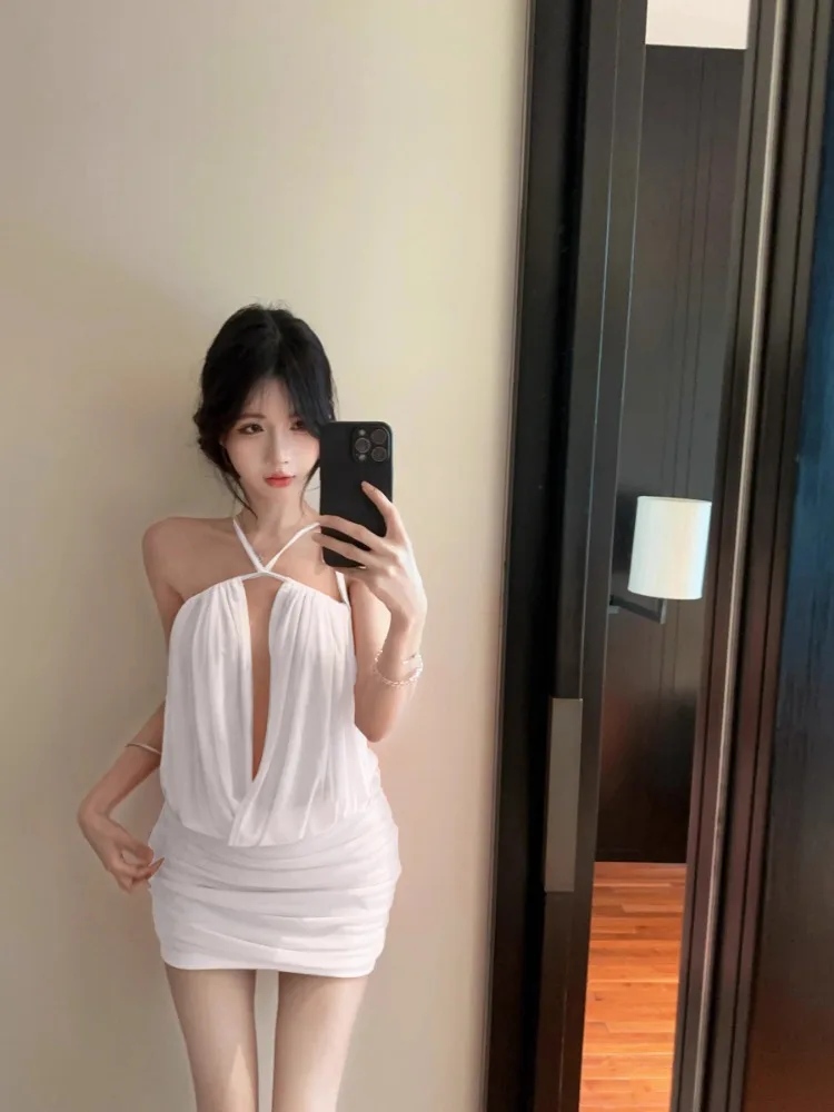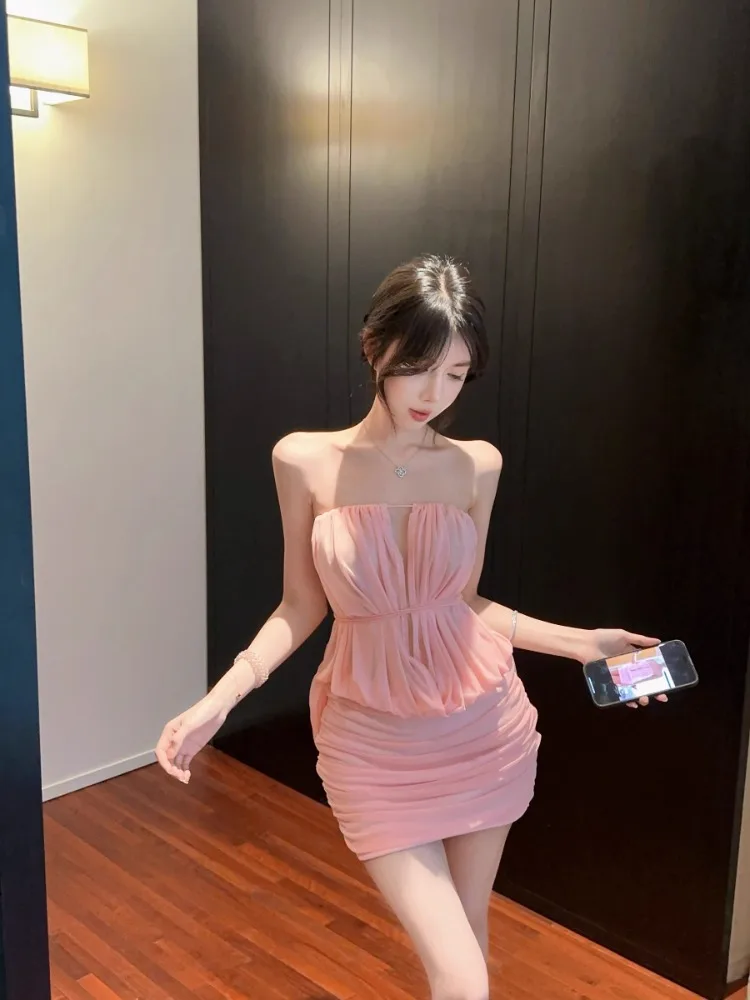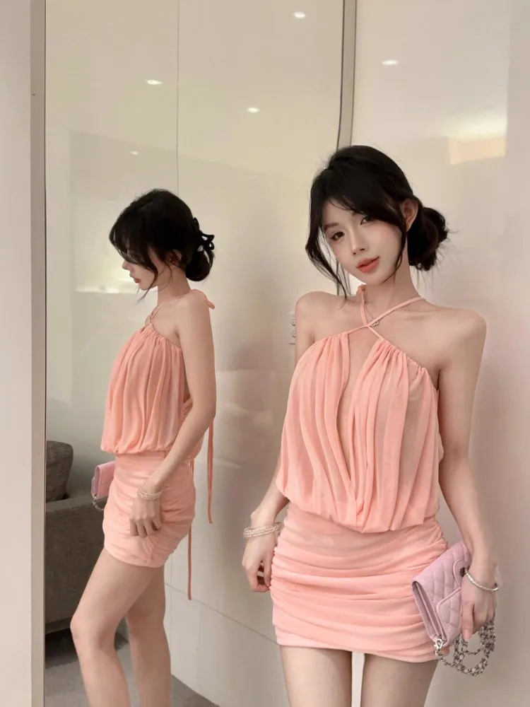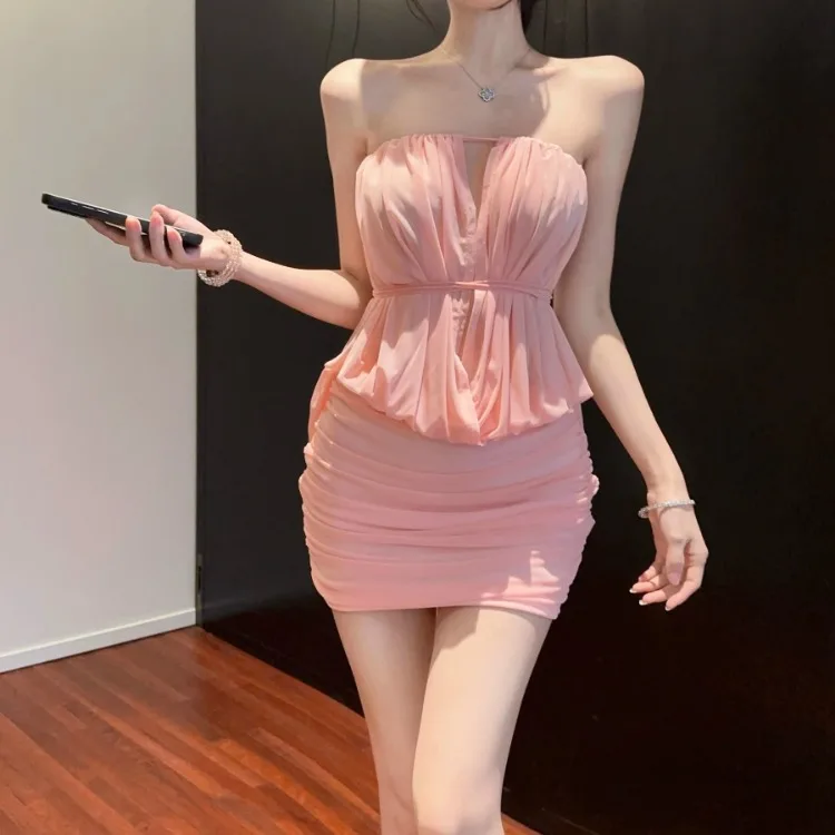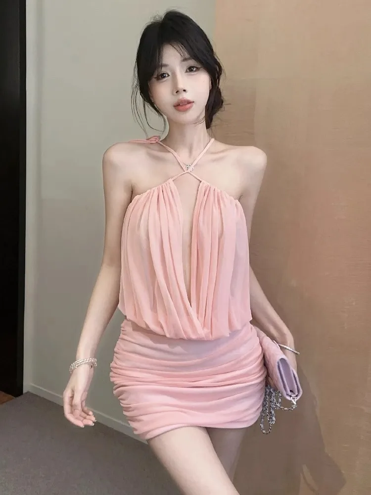 Lunivop Woman Dress Sexy Sleeveless Hollow Out Bandage Slim Summer Fashion Solid Ruched Party Mini Dresses Elegant Female