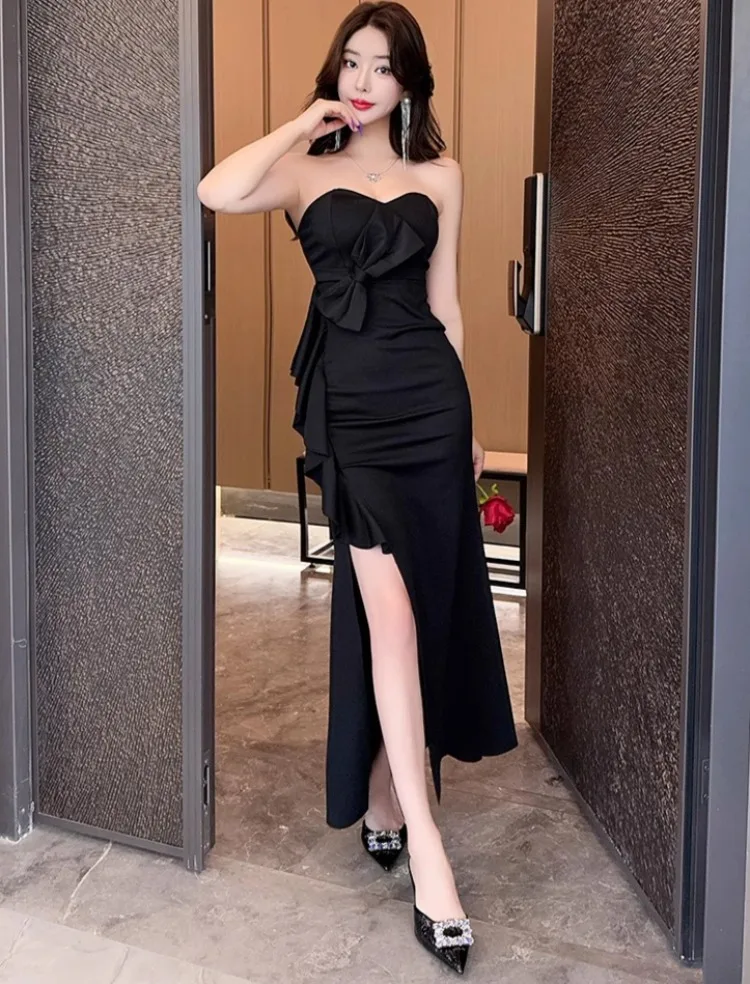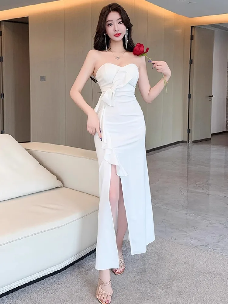 Lunivop Woman Dress Sexy Strapless Bow Slim Elegant Split Backless Ruffles Slim Temperament Fashion Party Dresses Ladies