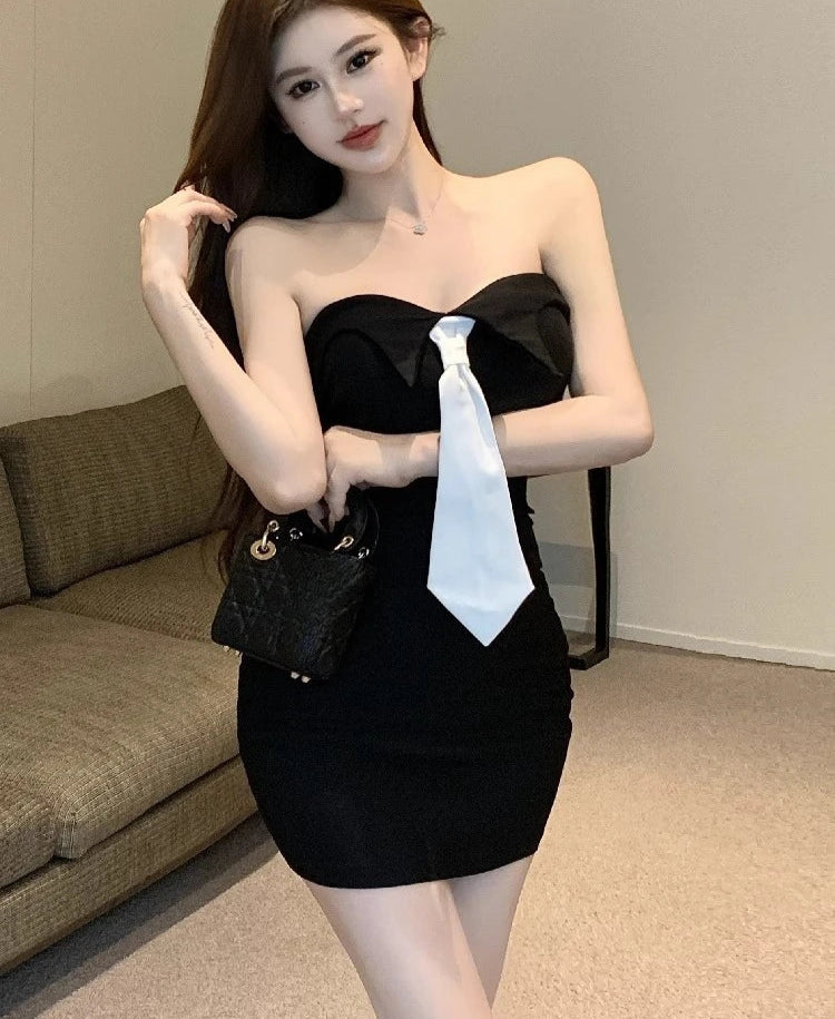 Lunivop Woman Dress Sexy Strapless Tie Slim Backless Vintage Elegant Summer Fashion French Style Chic Party Mini Dresses Casual
