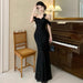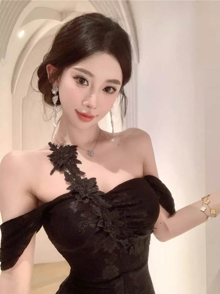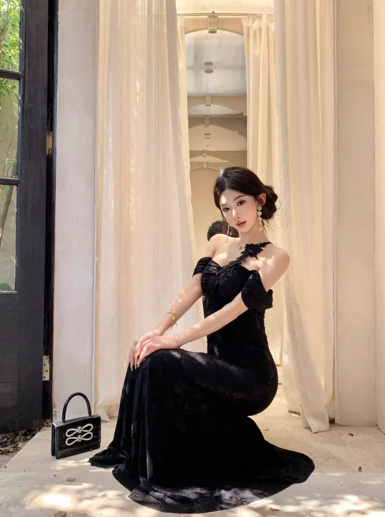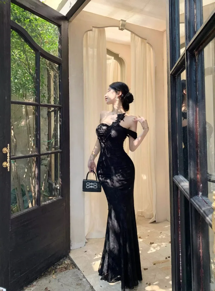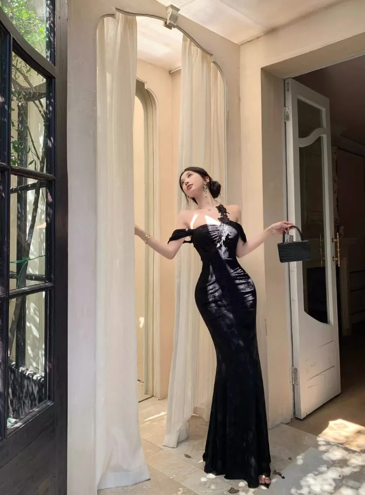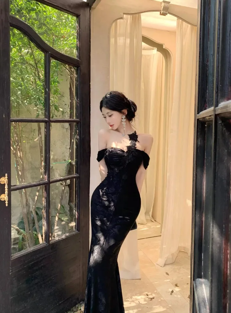 Lunivop Woman Dress Slash Neck Sexy Flowers Off Shoulder Backless Vintage Elegant Temperament Party Mermaid Dress Female Cocktail