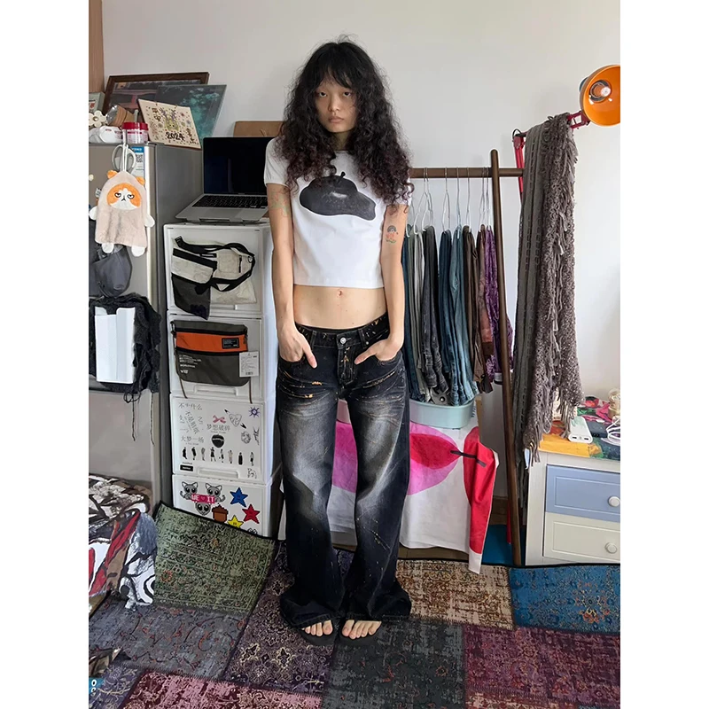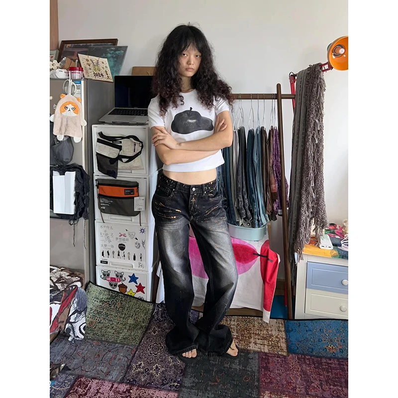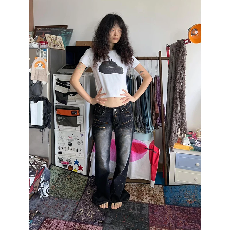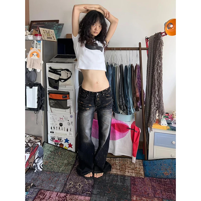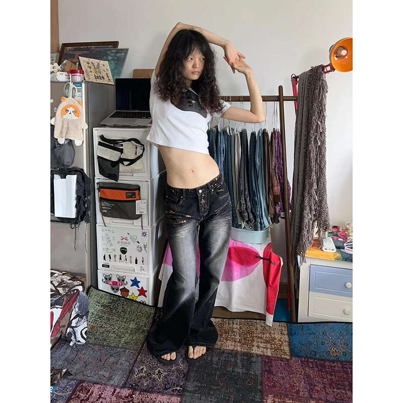 Lunivop Woman Vintage High Waist Baggy Bell Bottom Jeans Female Fashion Flare Pants Girls Aesthetic Blue Trashy Y2k 2000s Denim Trousers