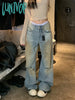 Lunivop Woman Y2k Grunge Baggy Low Waist Bottoms Hole Ripped Jeans Denim Pants Floor-Length Vintage Trousers Japanese Kpop 2000s Baddie
