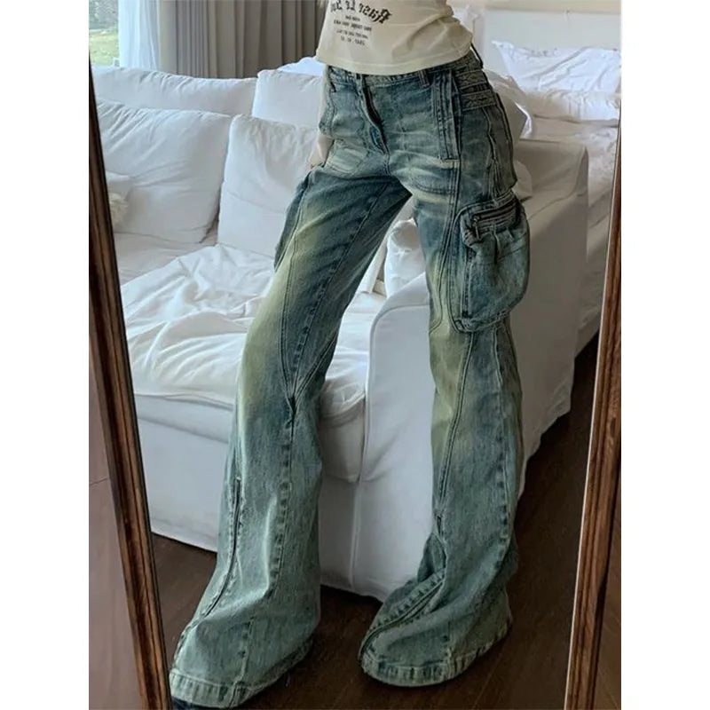 Lunivop Women Blue Baggy Cargo Jeans Harajuku Y2k 90s Aesthetic High Waist Denim Trouser 2000s Oversize Jean Pants Vintage Clothes