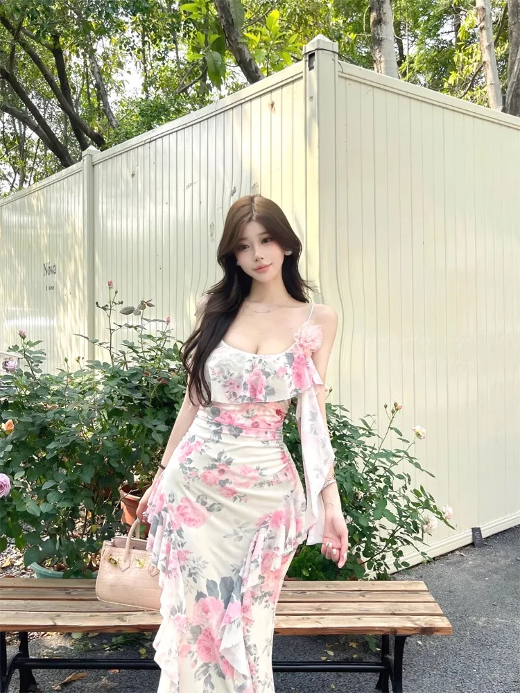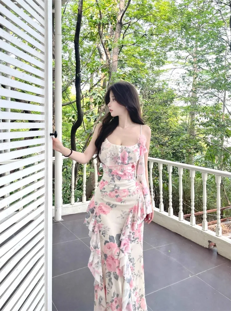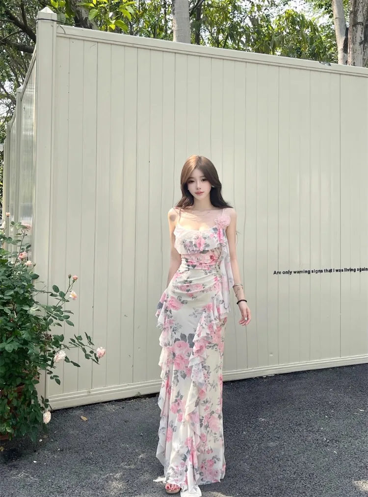 Lunivop Women Dresses Sleeveless Slash Neck Gradient Floral Printed Mesh Patchwork Slim Vintage Elegant Party Dress Ladies