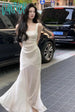 Lunivop Women Elegant Luxury Party Prom Midi Dress Summer Solid Irregular Mesh Straps Princess Vestidos Slim Ruched Women Mermaid Dress