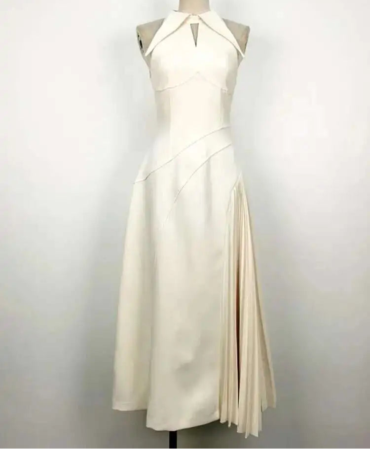 Lunivop Women Fashion Dress Lapel Hollow Out Sleeveless Patchwork Pleated Waist Asymmetric Elegant Dresses Summer New