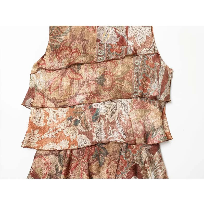 Lunivop Women Fashion Printed Layering Ruffles Short Dress Summer New Street Sleeveless Mini Dress Elegant Holiday Party Dresses