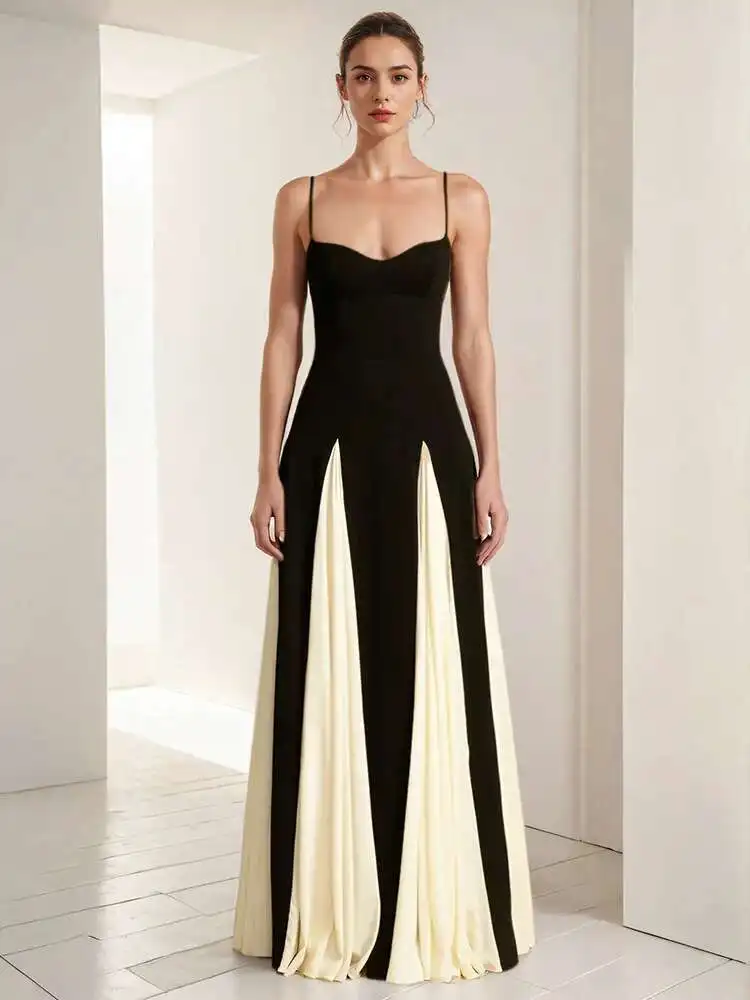 Lunivop Women Fashion Strapless Dress Chest Wrapping Backless Contrast Color Waist Retraction Ankle-length Dresses Spring 2025 New