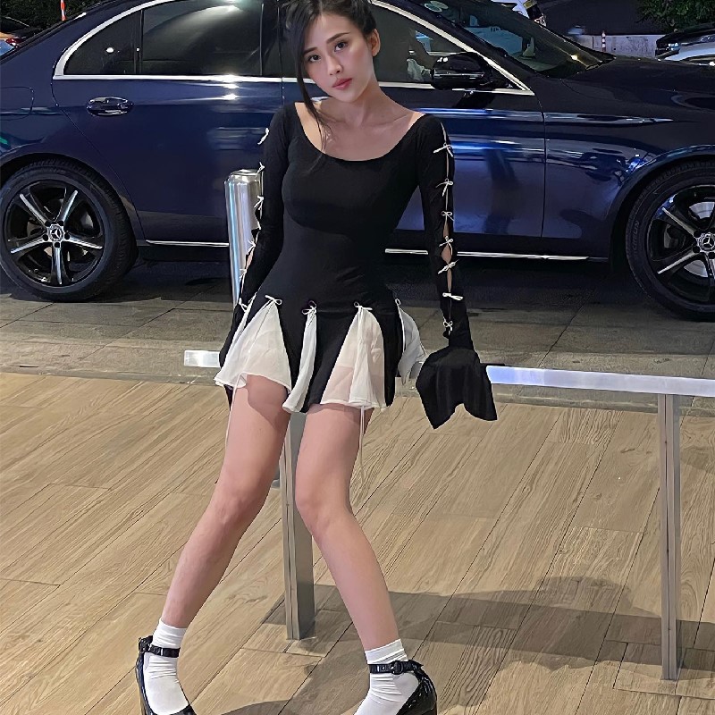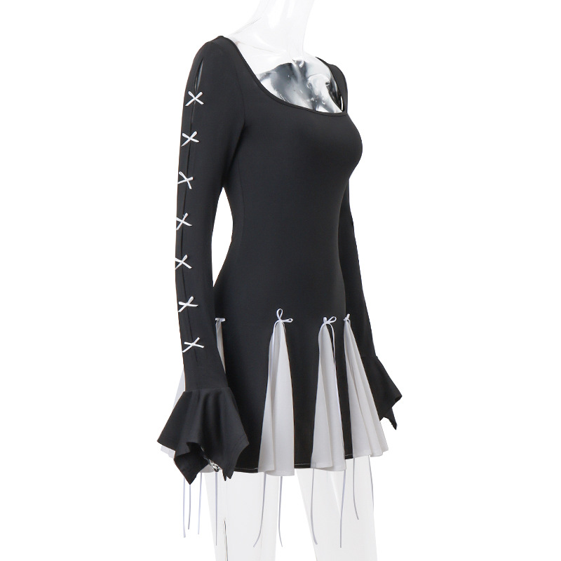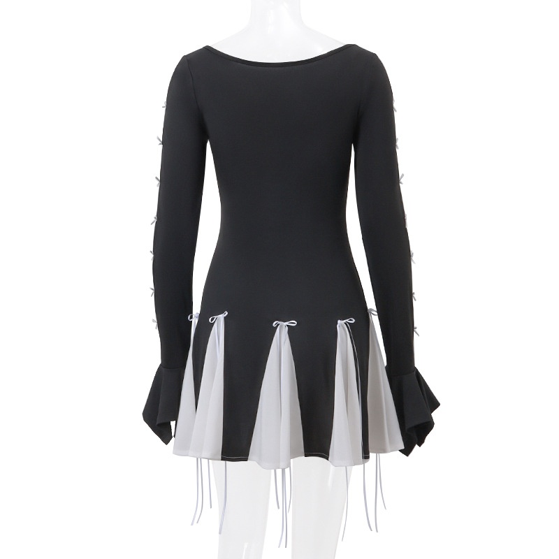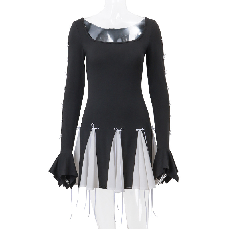 Lunivop Women Hotsweet Kawaii Long Sleeve Bodycon A-line Mini Dress 90s Vintage Cute Bow Pleated Dress Korean Y2K 00s Retro Streetwear