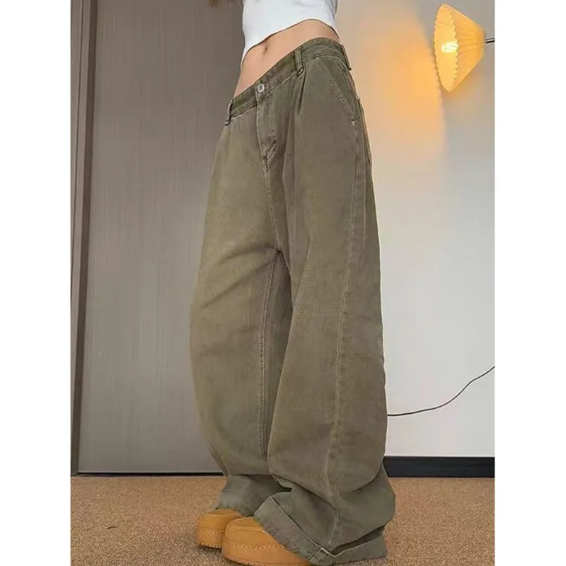 Lunivop Women Khaki Jeans Streetwear Fashion Y2K American Style High Waisted Wide Leg Jean Female Trouser Hip Hop Baggy Denim Pants