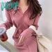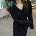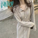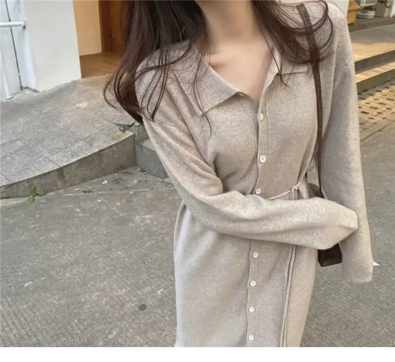 Lunivop Women Knitted Midi Dress Korean Fashion Loose Long Sleeve Single Breasted A-line Sweater Dresses Spring Ribbed Maxi Robe Vestido