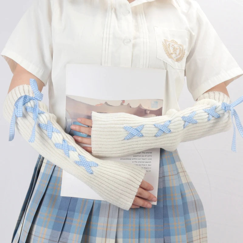 Lunivop Women Lolita Knitted Arm Warmer Long Fingerless Gloves Mitten Kawaii Y2K Solid Arm Sleeve Fashion Soft Girls Clothes Punk Gloves