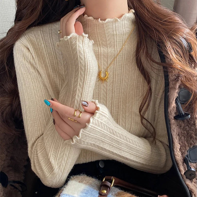 Lunivop Women Long Sleeve Knitted Top Textured Stretchy Mock Neck Fitted Sweater Pullover Jumper Fall Winter Teen-girl Basic Outfit