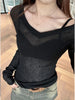 Lunivop Women Long Sleeve T Shirt Thin Perspective Summer Solid Slim Casual Shirts Female Pullovers Basic Tee Y2k Clothes Streetwear Top