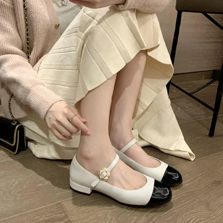 Lunivop Women Mary Jane Shoes New Fashion Shallow Flower Buckle Ladies Soft Sole Casual Shoes Elegant Low Heel Leather Shoes Flats