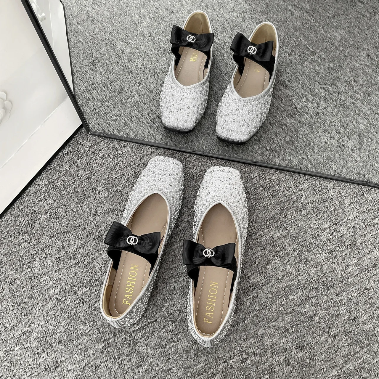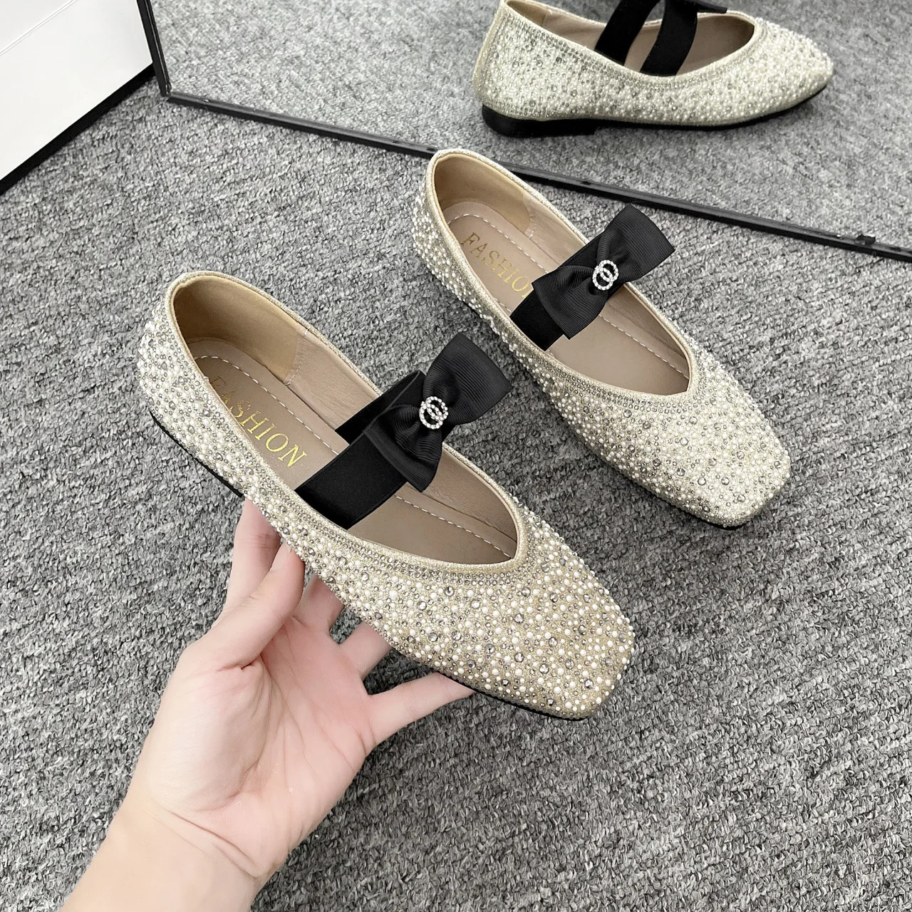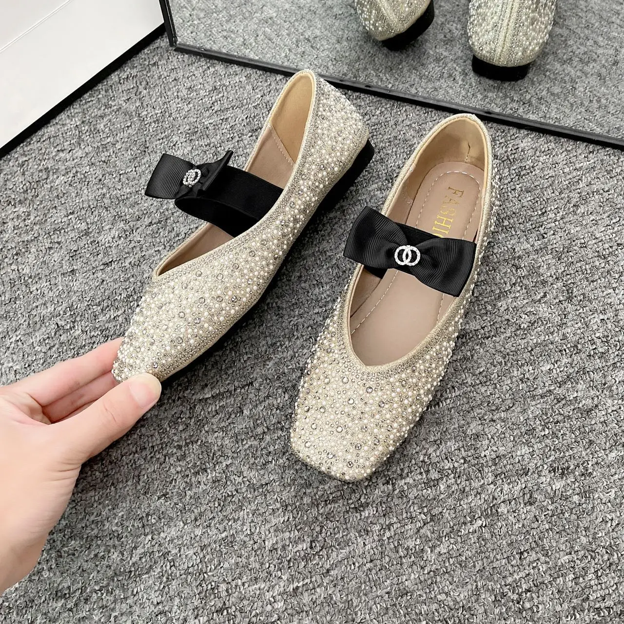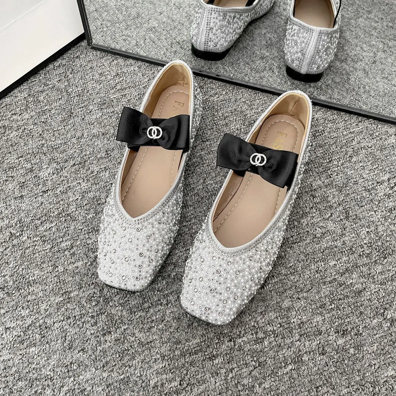 Lunivop Women Mary Jane Shoes New Fashion Shiny Rhinestone Women Flats Ladies Bowknot Square Toe Ballet Shoes Zapatos De Mujer
