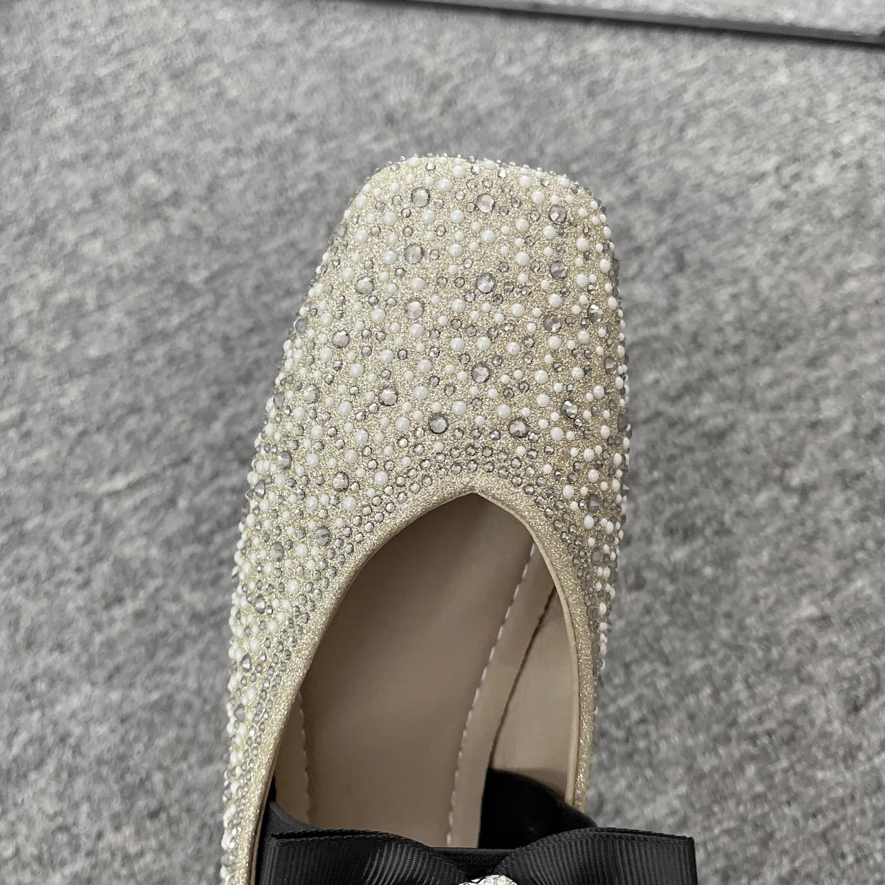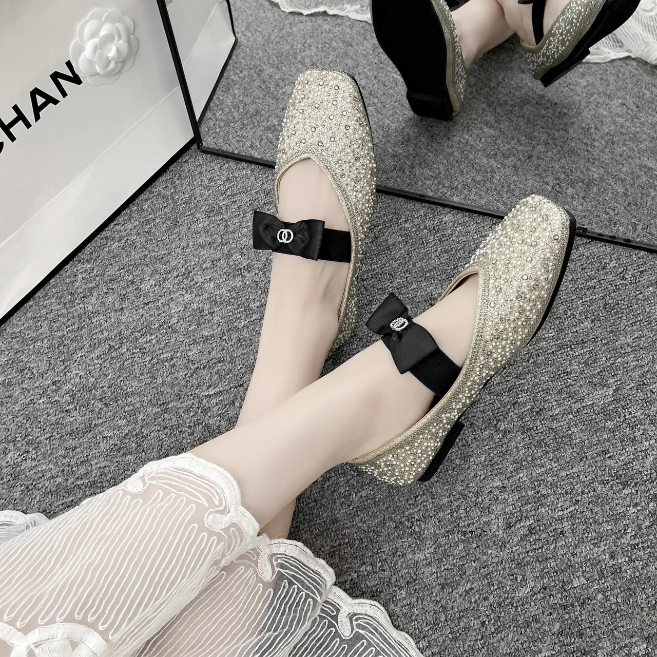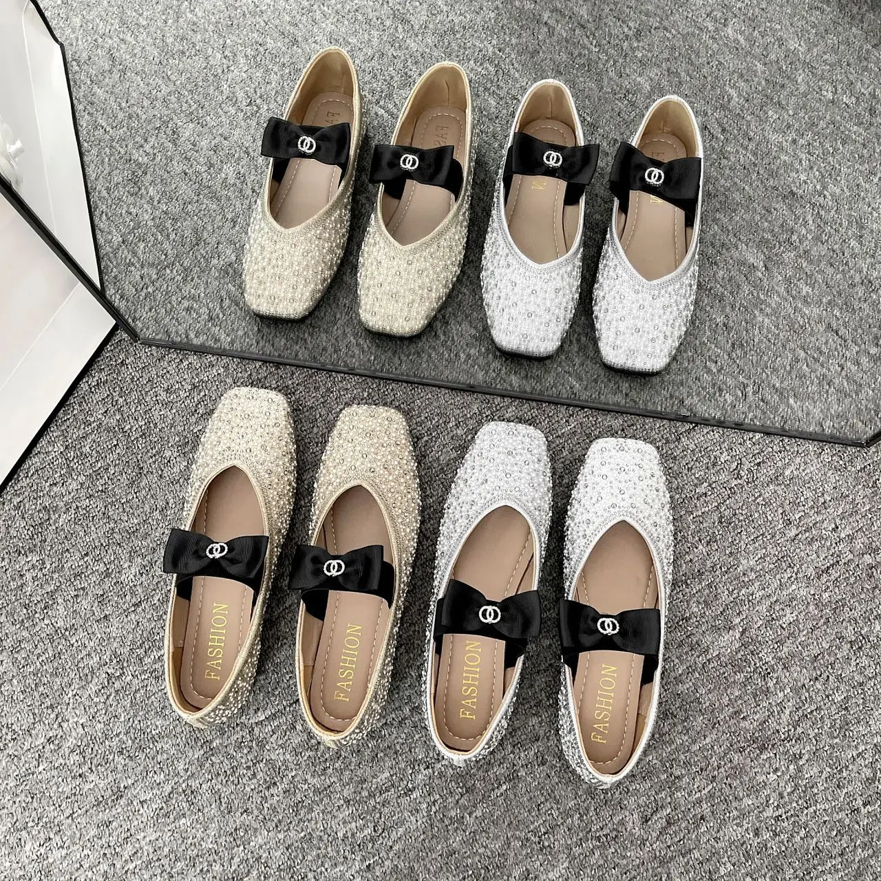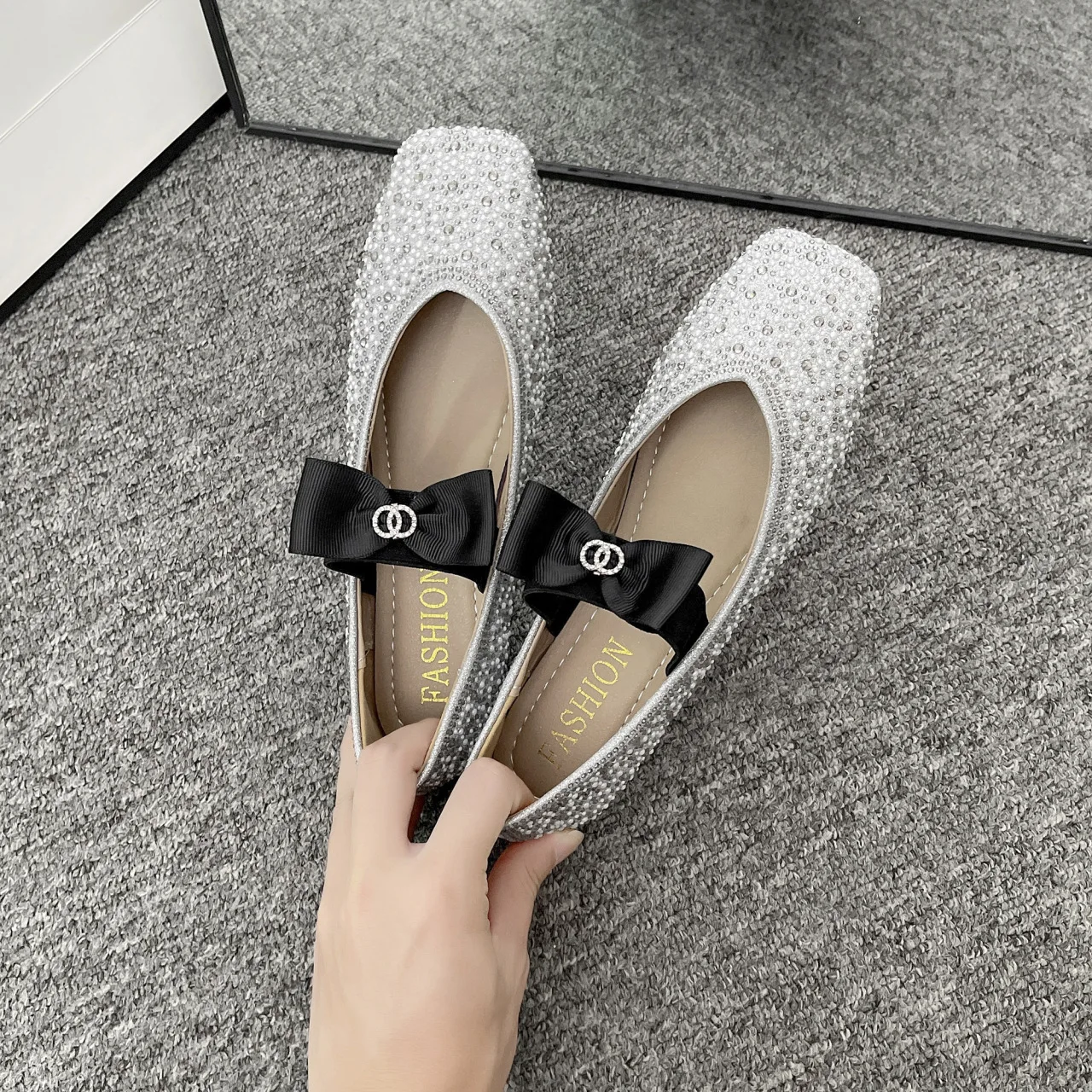 Lunivop Women Mary Jane Shoes New Fashion Shiny Rhinestone Women Flats Ladies Bowknot Square Toe Ballet Shoes Zapatos De Mujer