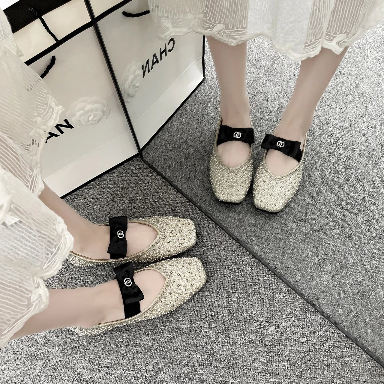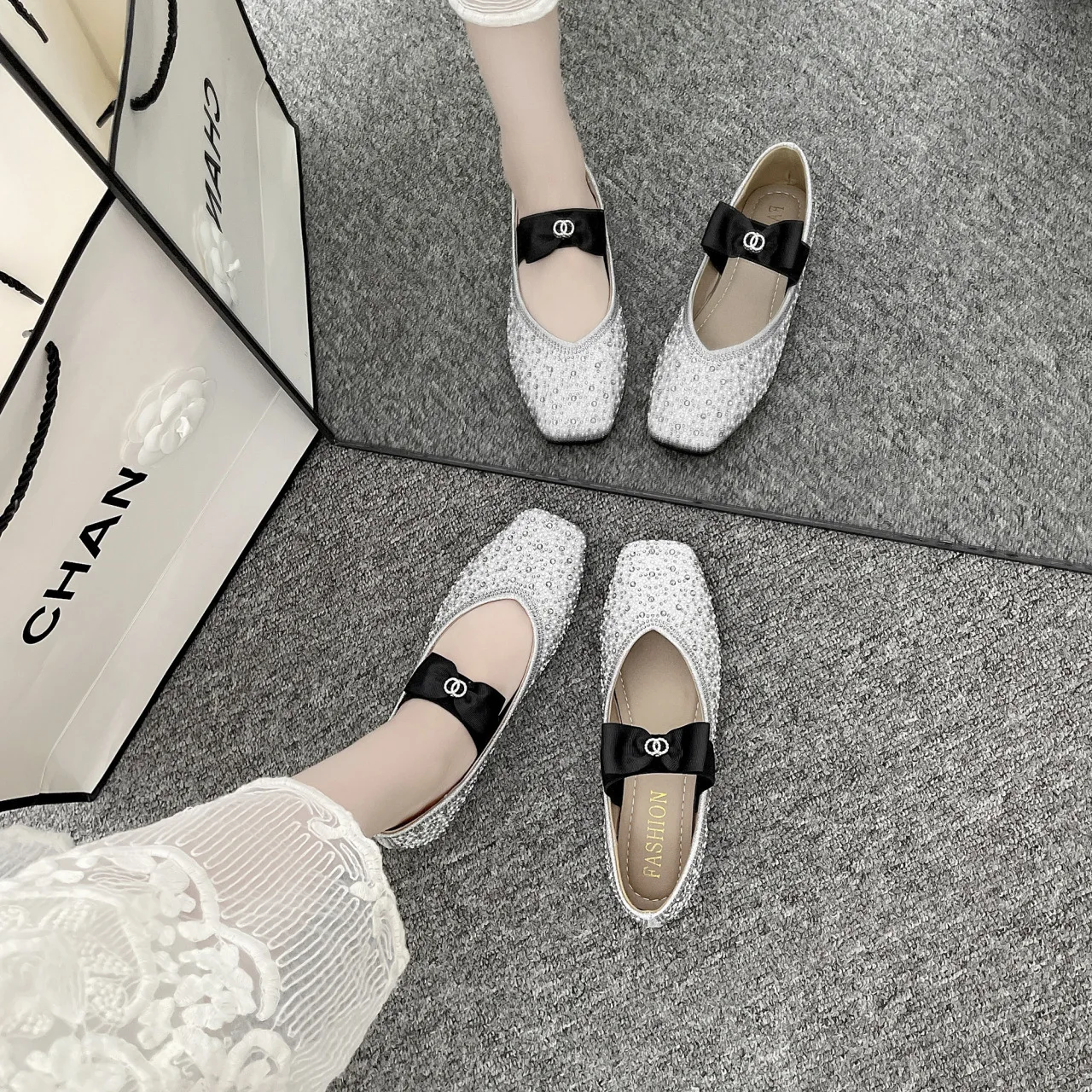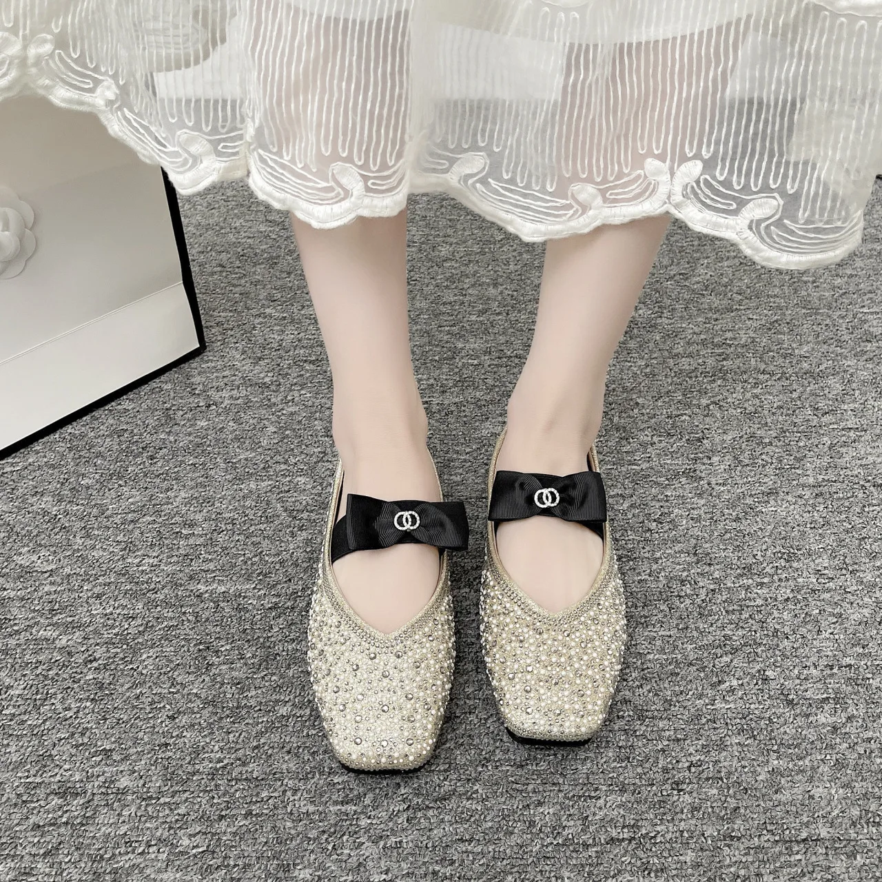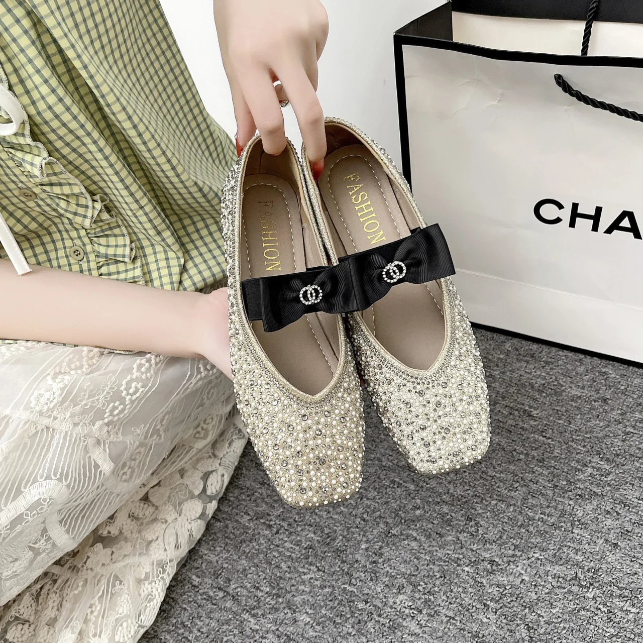 Lunivop Women Mary Jane Shoes New Fashion Shiny Rhinestone Women Flats Ladies Bowknot Square Toe Ballet Shoes Zapatos De Mujer