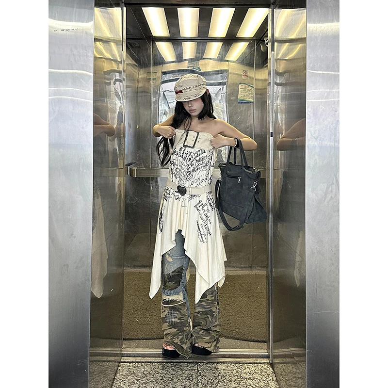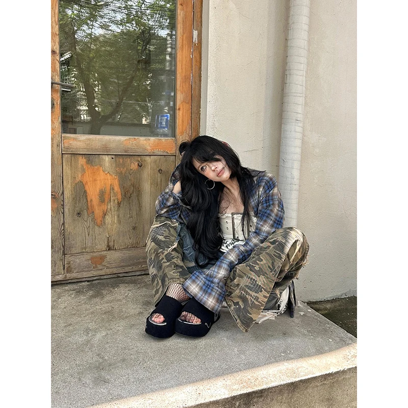Lunivop Women Patchwork Y2k Ripped Jeans Harajuku Aesthetic Baggy Denim Trousers Vintage Jean Pants Japanese 2000s Style Trashy Clothes