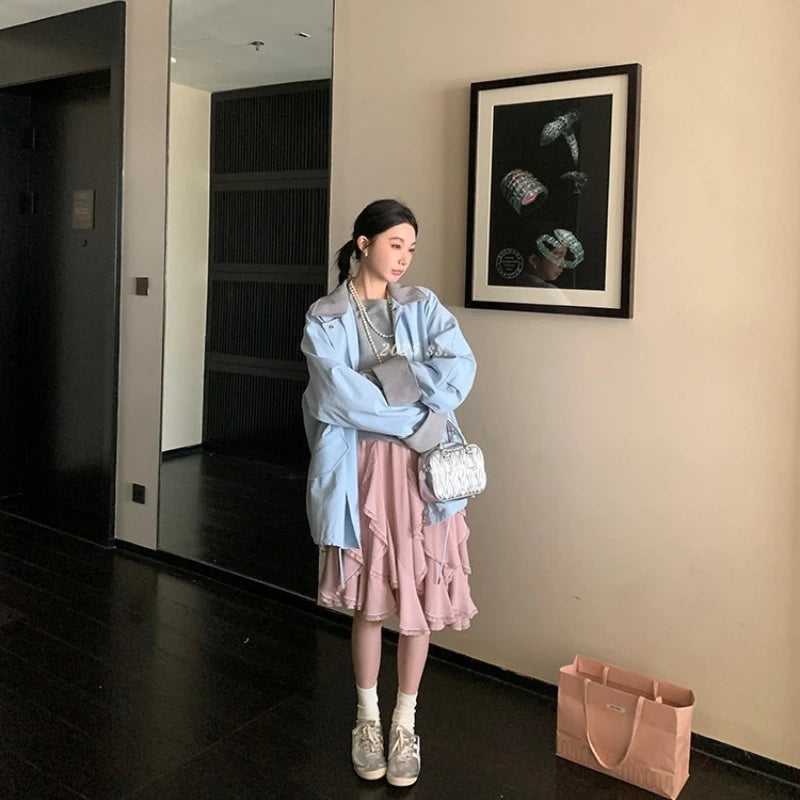 Lunivop Women Pink Ruffled Skirts Elegant Korean Style High Waist Elastic Waist Asymmetric Lace Layered Short Skirts Mesh Skirt