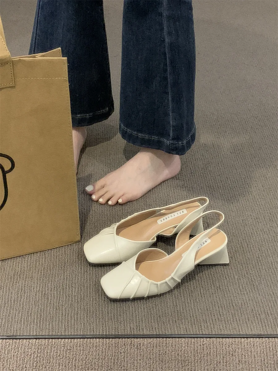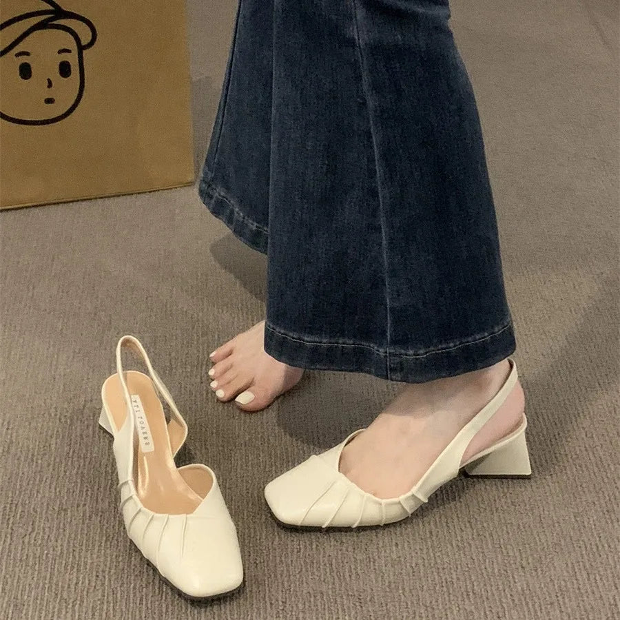 Lunivop Women Slingbacks Shoes High Heels Thick Heel Shoes Cow Leather Fashion Pleated Pumps Ladies Elegant Sandals Zapatos De Mujer