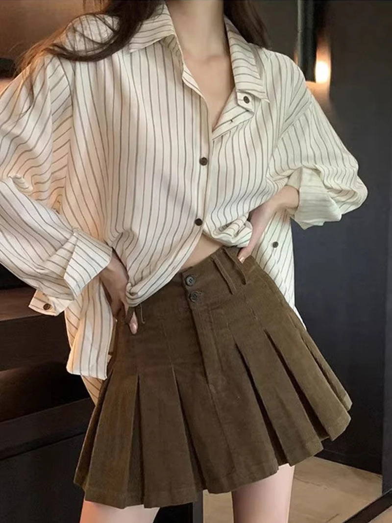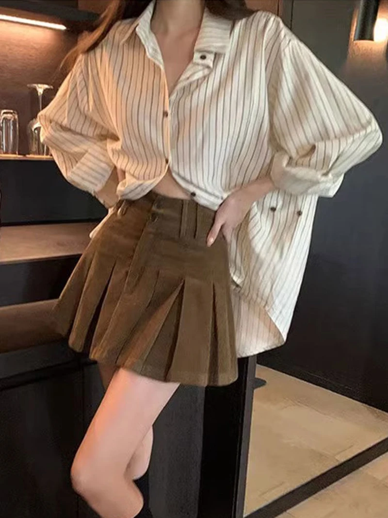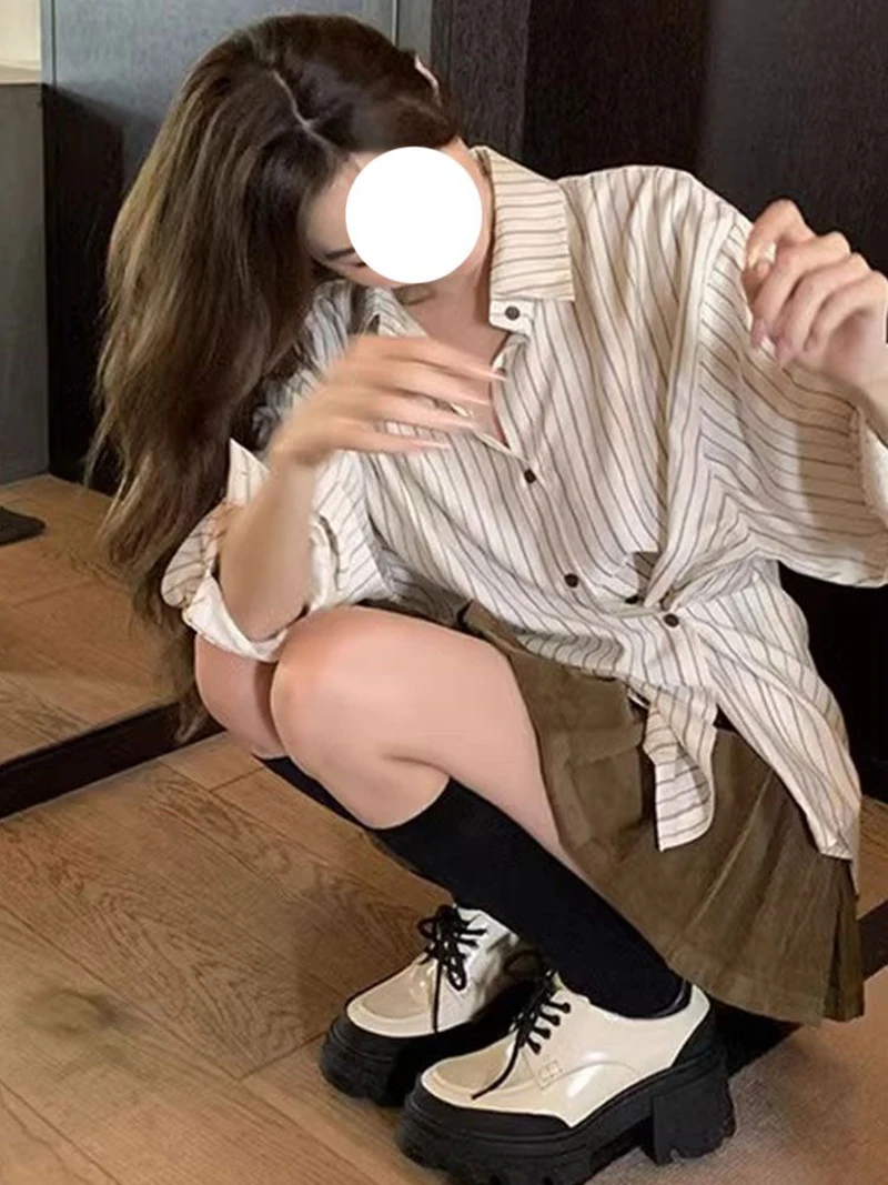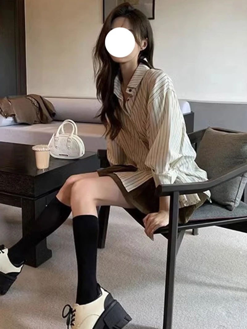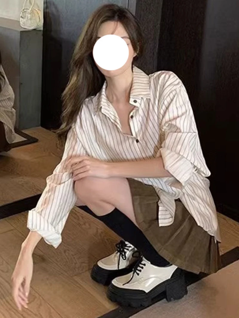 Lunivop Women Striped Shirt Korean High Street Casual Loose Long Sleeve Tops Summer Streetwear Irregular Turn Down Collar Ladies Blouse
