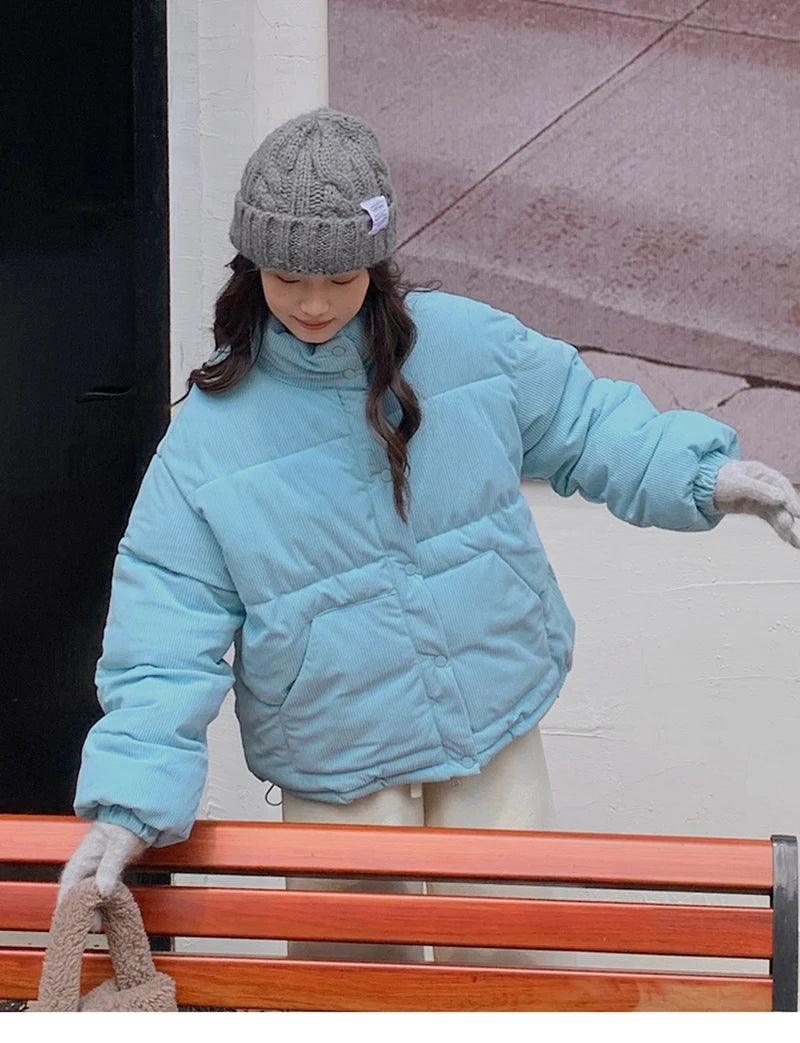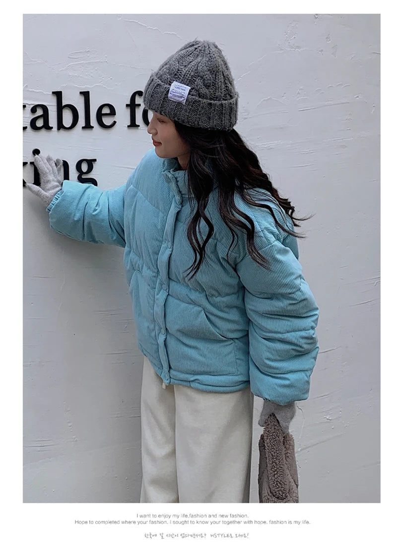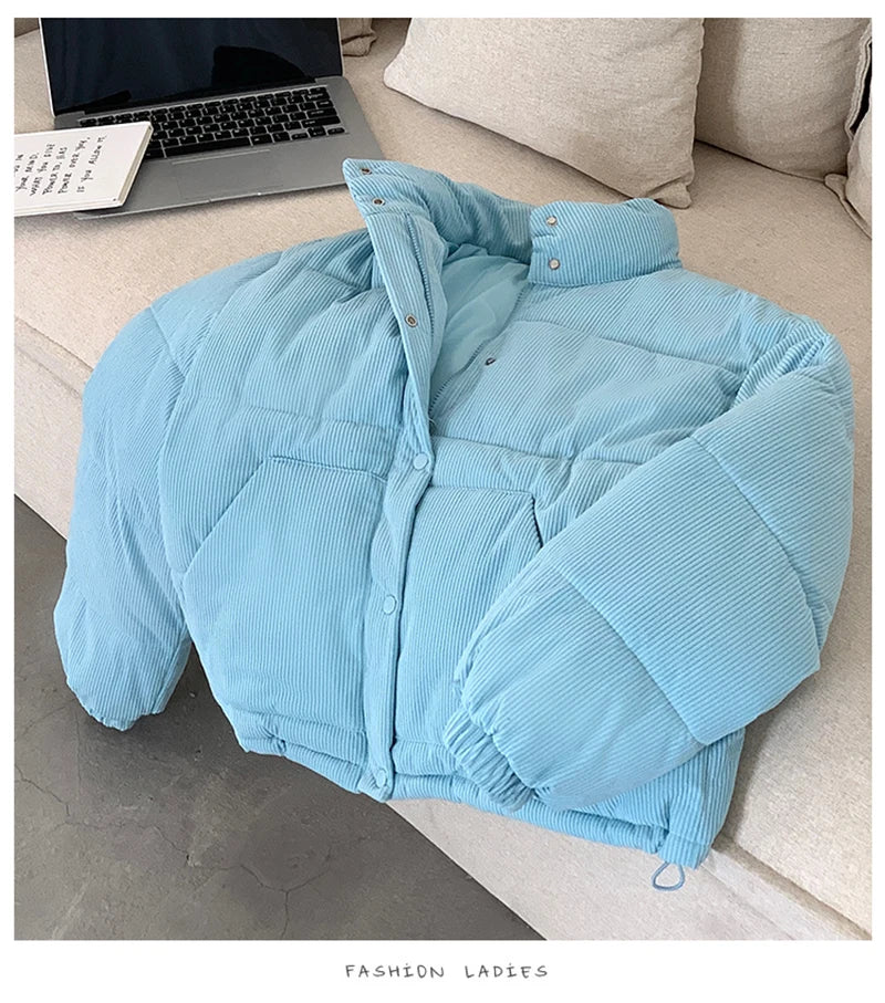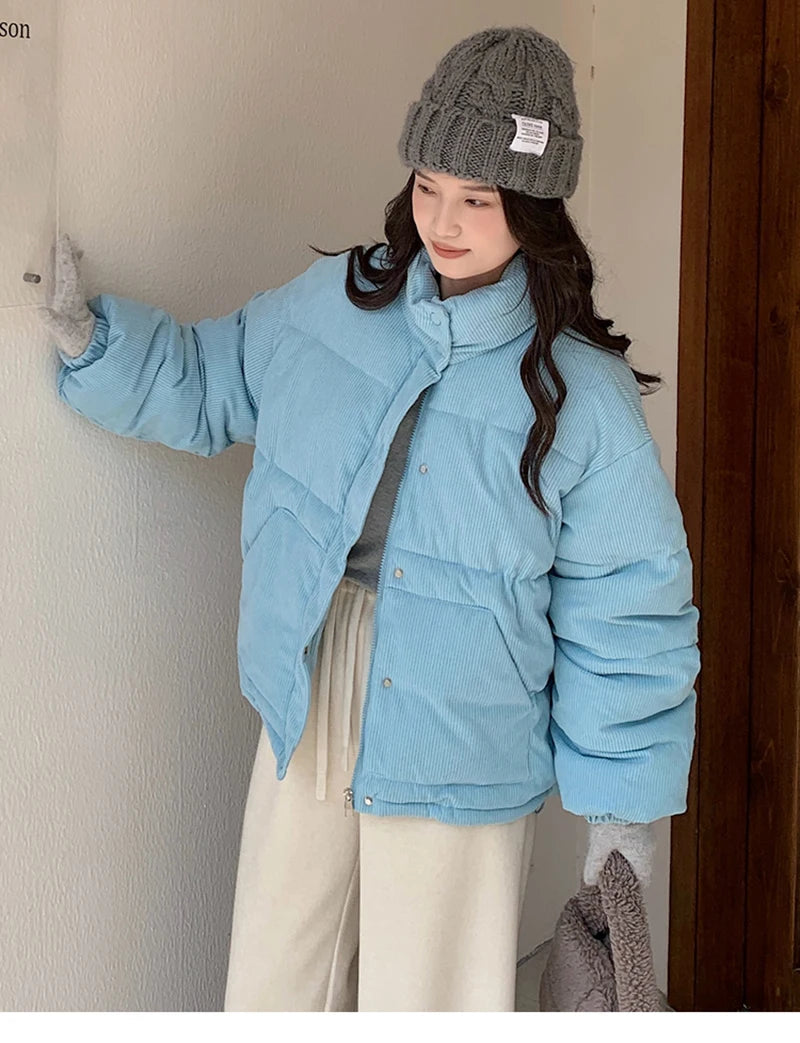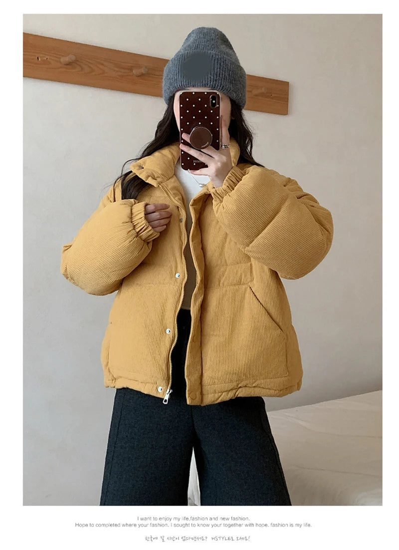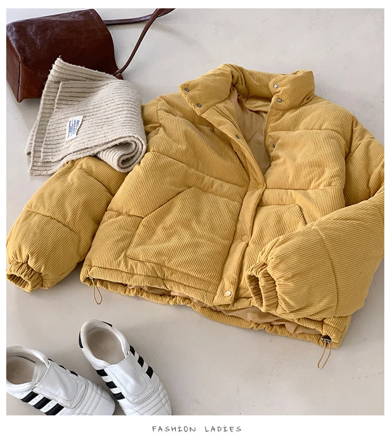 Lunivop Women Sweet Corduroy Parkas Warm Long Sleeve Retro Stand Collar Cotton Coat Winter Thick Casual Preppy Style Korean Jacket